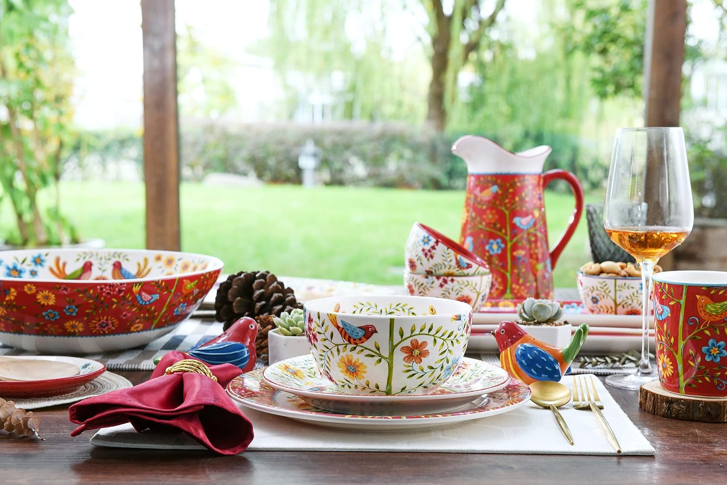 Bico Red Spring Bird Ceramic 16 inch Oval Platter, Microwave & Dishwasher Safe
