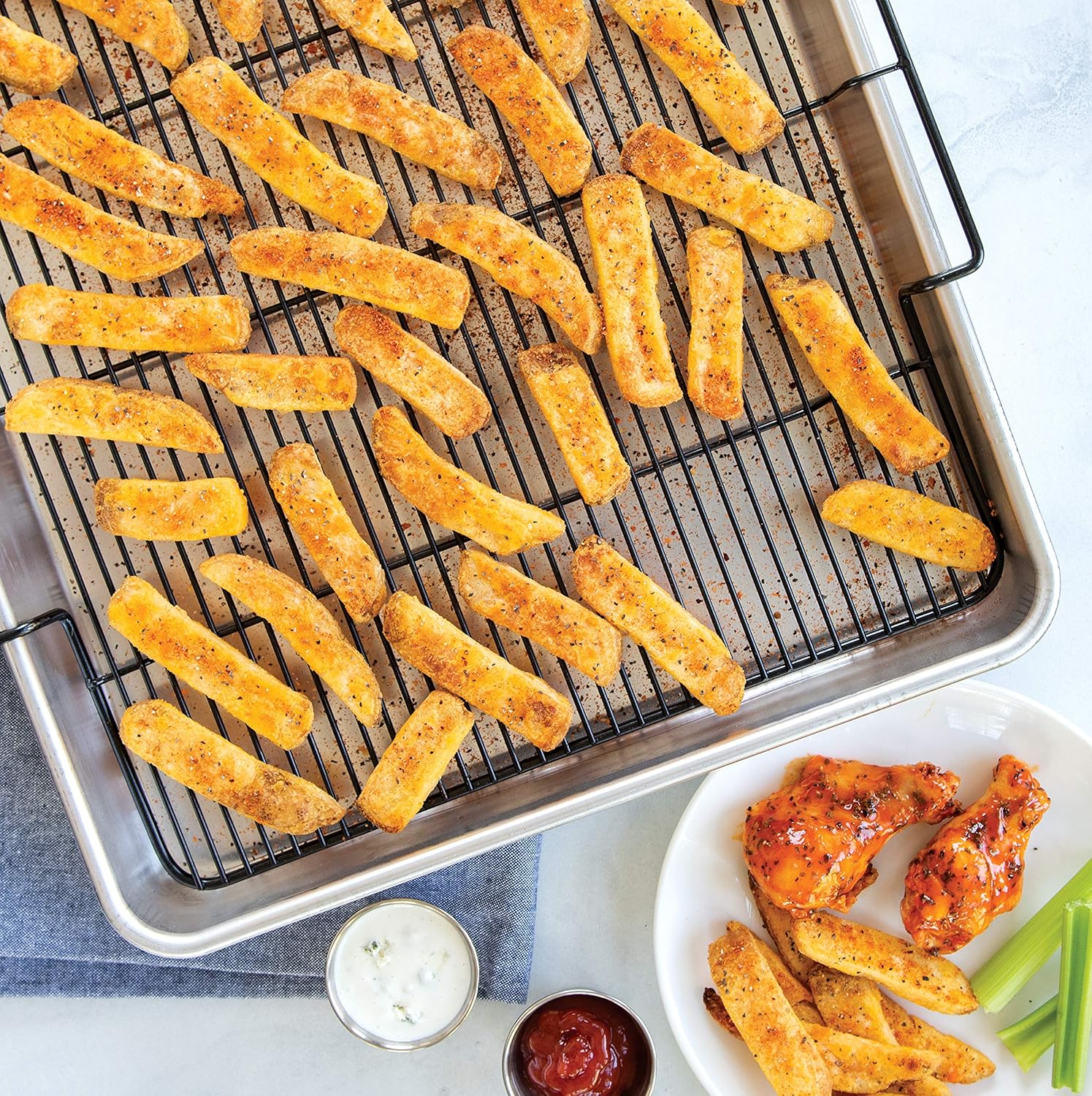 - Air crisp in your oven with this extra large oven crisp baking tray
