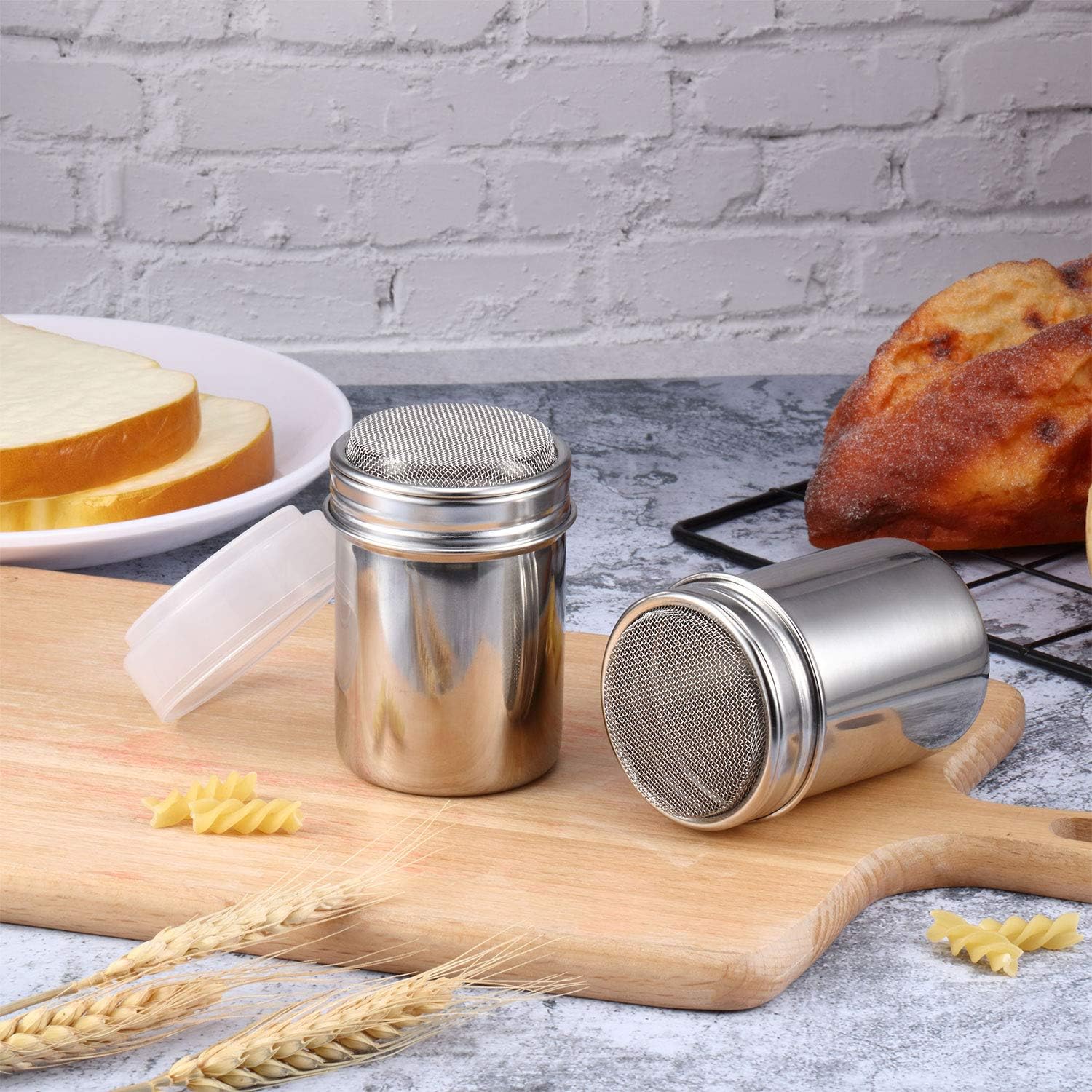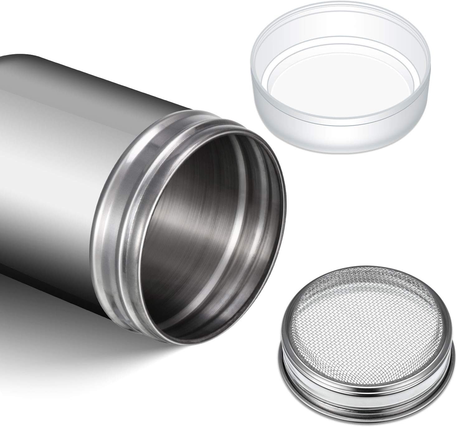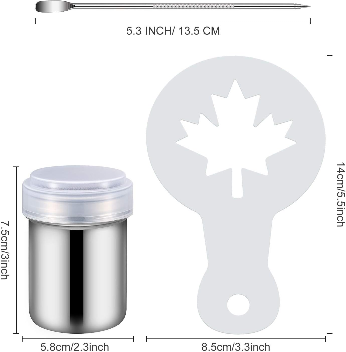 - Coffee dusting cans: the dusting cans are made of stainless steel which are durable to serve you for long time, can make your work easier, and the ground coffee and sugar powder are more delicate