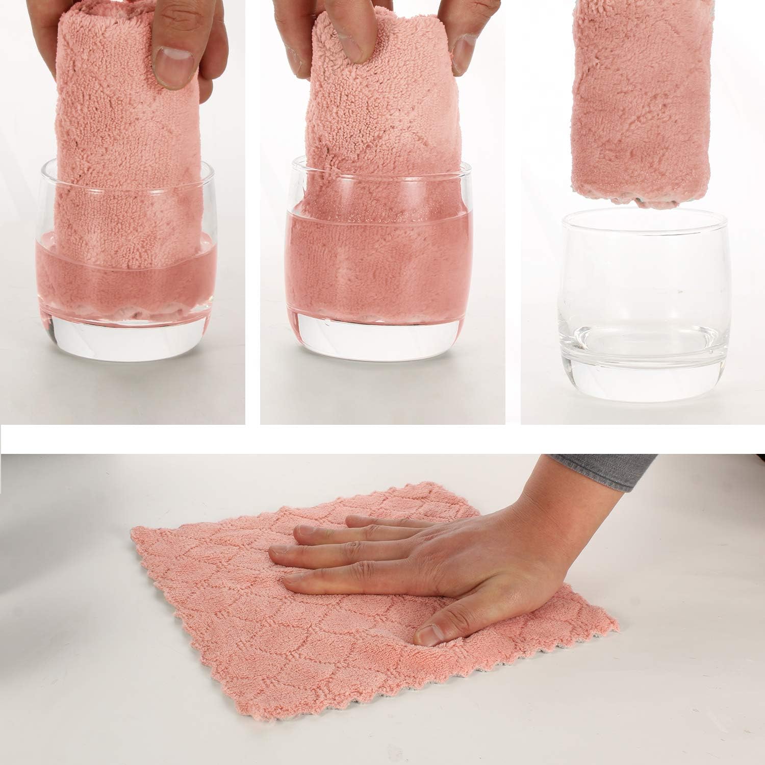 - HIGH QUALITY MATERIAL - Our dish rags are made of high quality non-abrasive and extra soft coral velvet thickening material, which is not easy to lint and fade, soft and not hurting hands, natural and without any chemicals. These dish cloths are not only suitable for kitchen cleaning, but also suitable for cleaning home furniture, car, window, electric appliance etc. It’s so easy to remove dust, dirt, stain, grease, fingerprints.