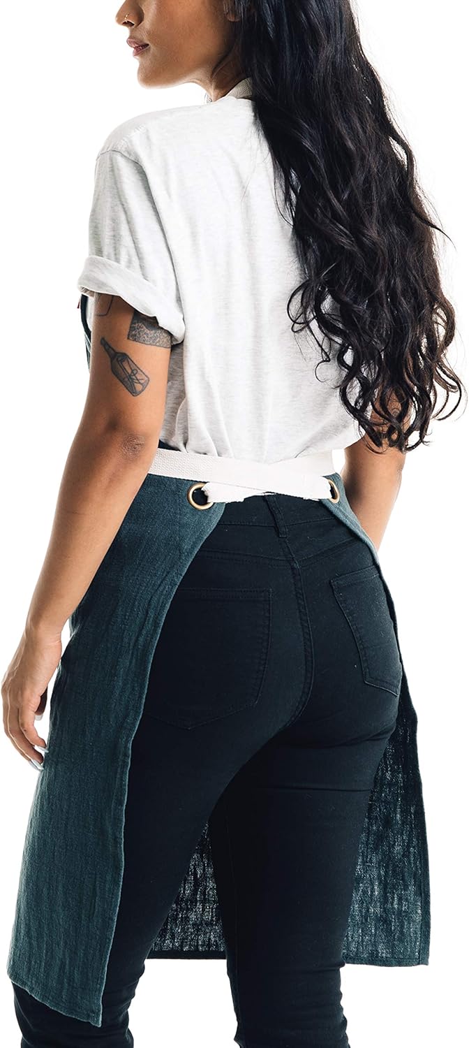 Caldo Linen Kitchen Apron - Mens and Womens Linen Bib Apron - Adjustable with Pockets (Spruce)