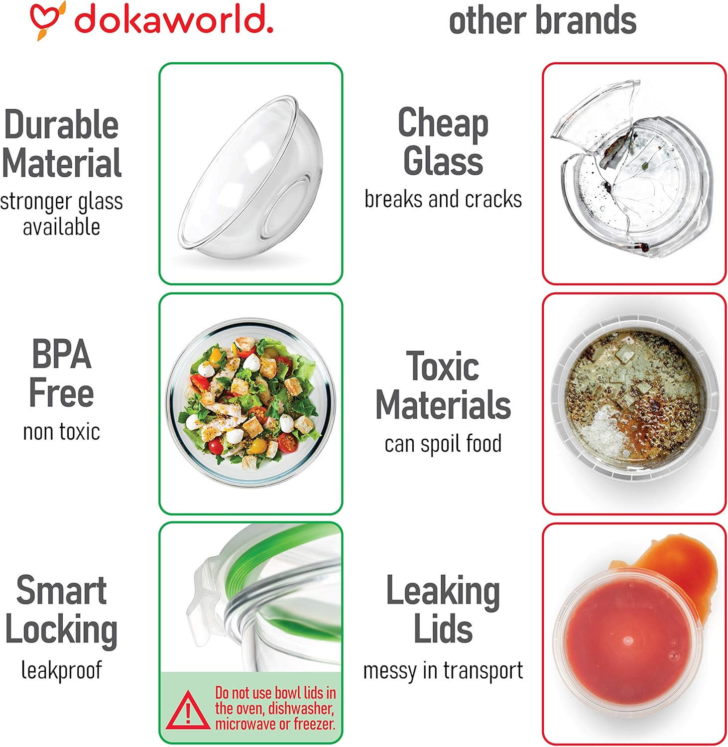 - KEEP FOOD FRESH LONGER: The 100% hermetic silicone o-ring seal of our glass bowls with lids prevents unpleasant odors. This nesting bowls with lids set fits perfect for food storage too.