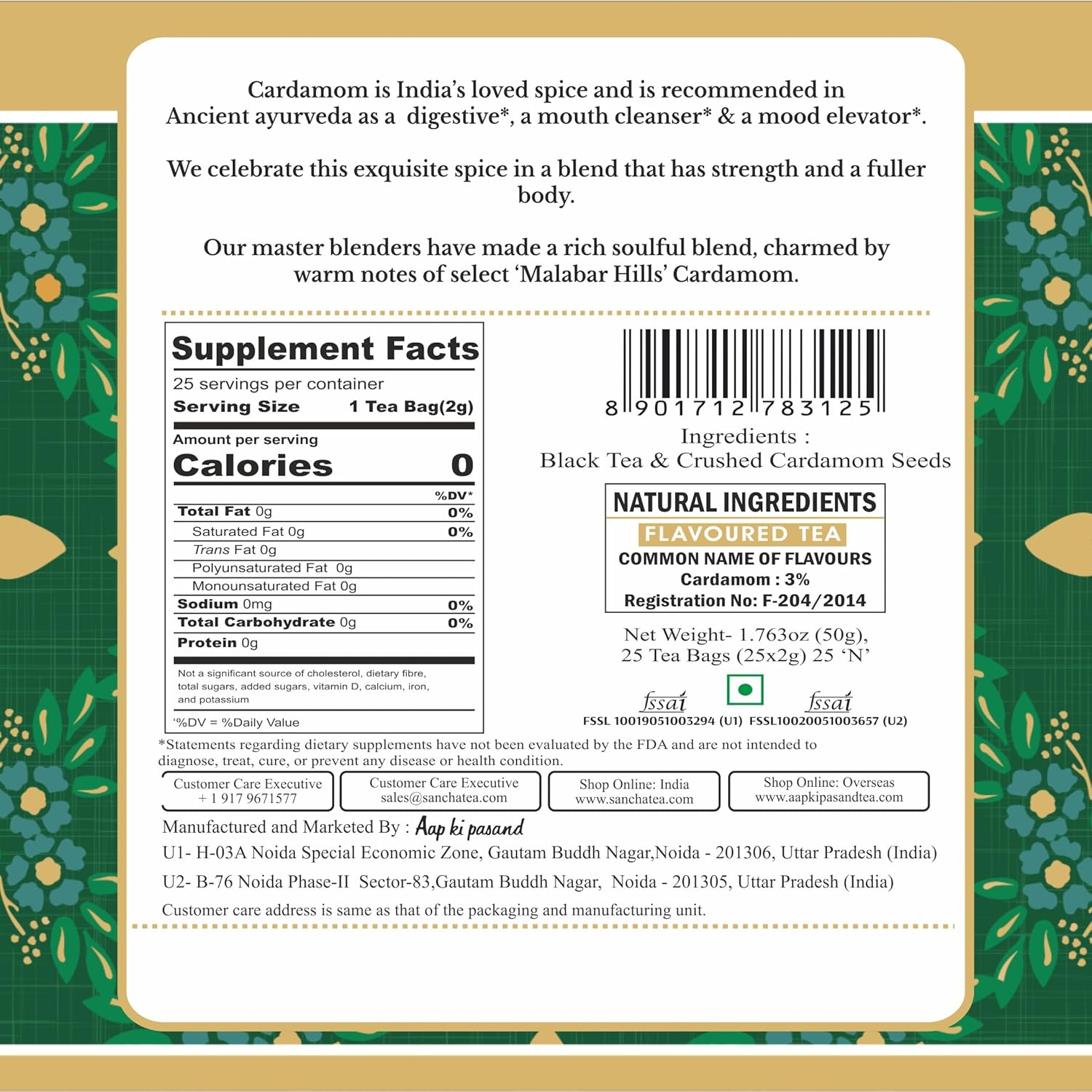 - 🍃 Rich & Aromatic Flavour – Experience a heart-warming, creamy chai with an intense aromatic concentration of cardamom.