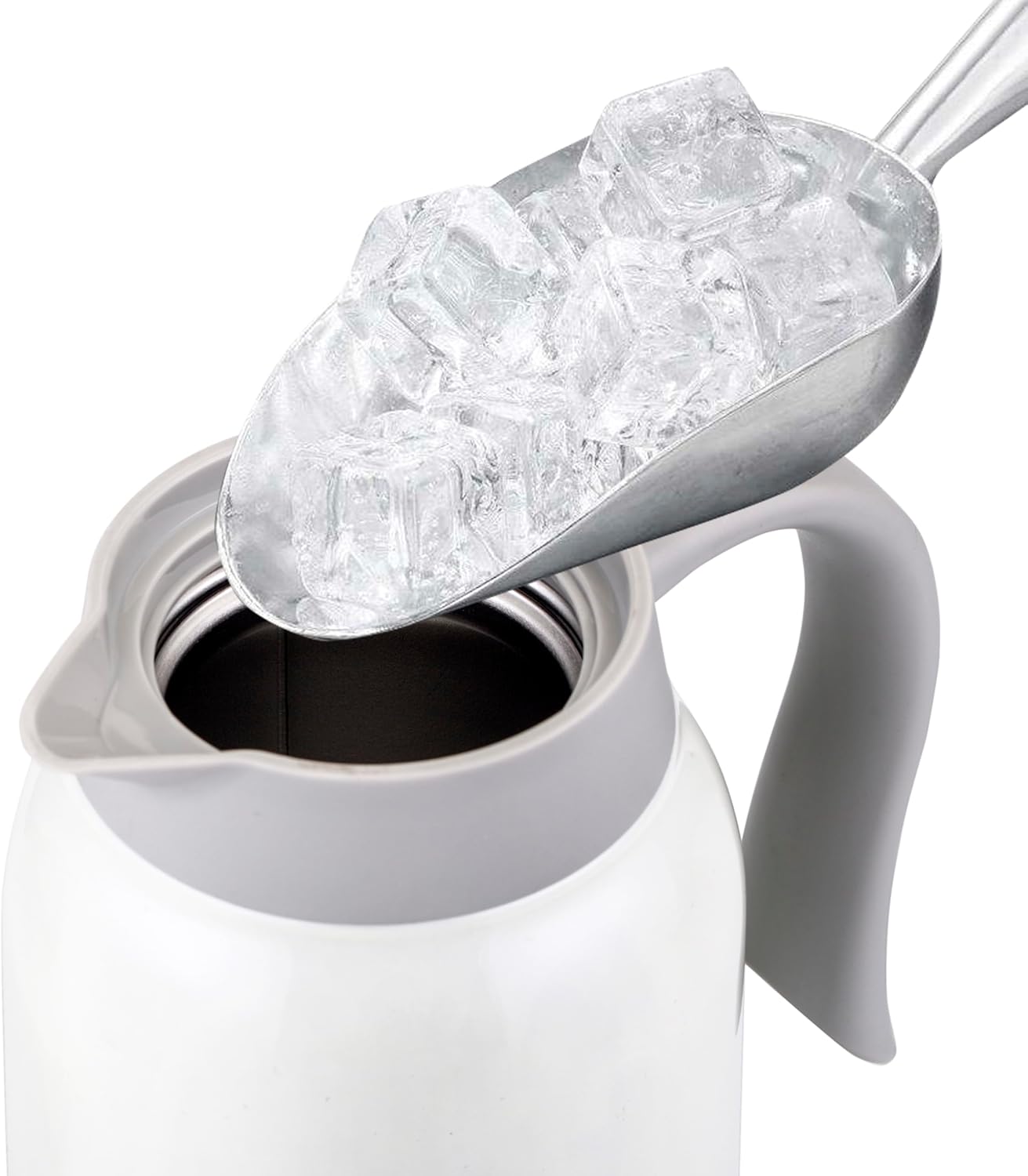 - USER FRIENDLY: GiNT 51 oz large thermal carafe features extra wide top opening, easy for cleaning and adding ice cubes. It’s comfortable handle design is made for single hand, simple-push button enables pouring without leaking, dripping or spilling. Ideal used as bedside, restaurant, office, party, camping, travel insulated coffee carafes.