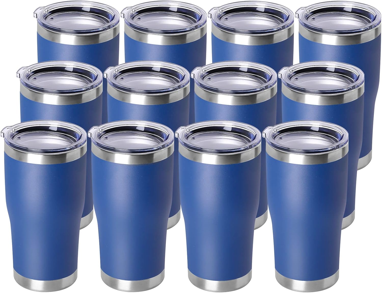 DOMICARE 20oz Stainless Steel Tumblers with Lid, Powder Coated Tumbler, Double Wall Vacuum Insulated Coffee Travel Mug(Dark Blue, 12)