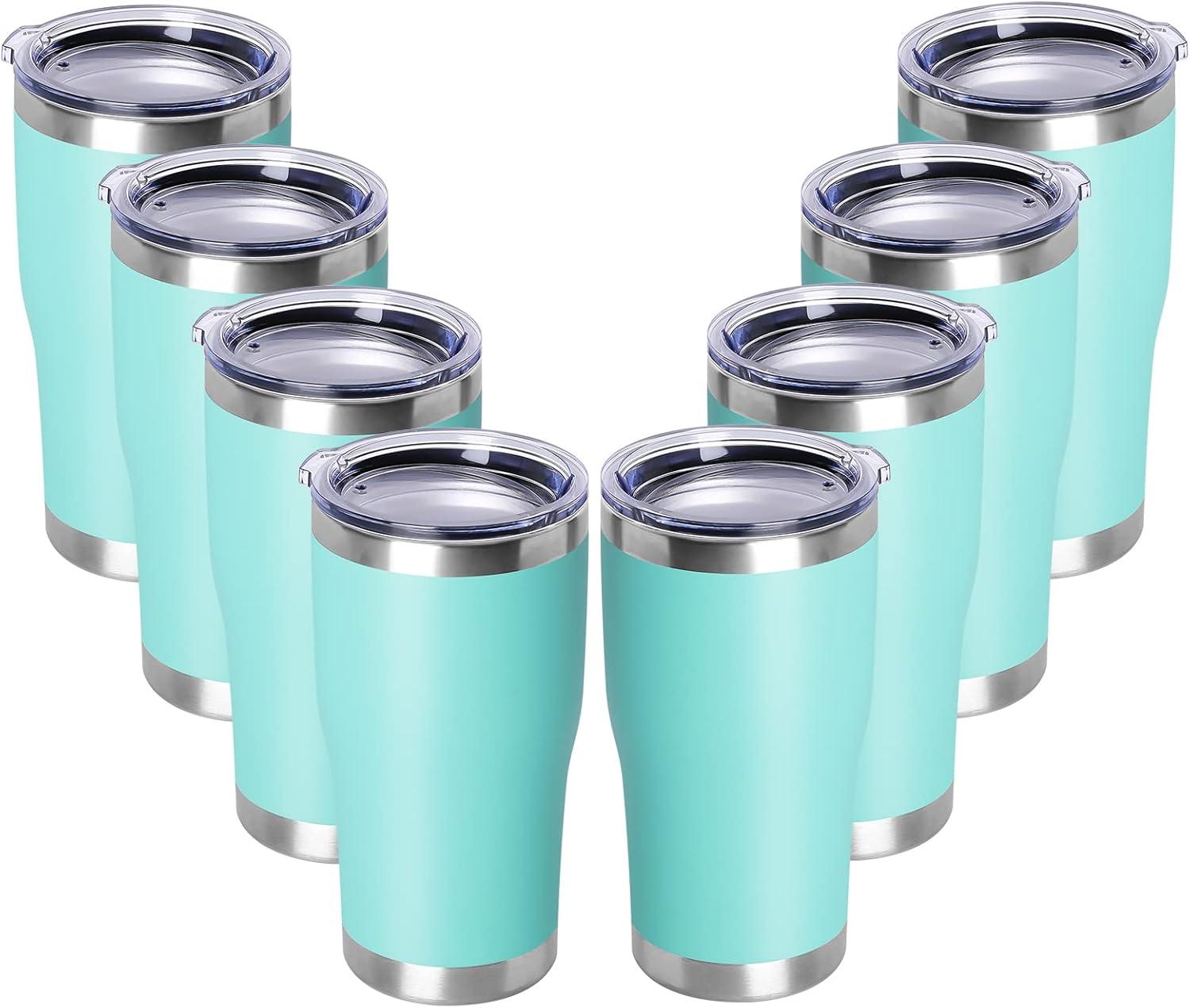 DOMICARE 20oz Tumbler with Lid Stainless Steel Tumblers Bulk, Double Wall Vacuum Insulated Coffee Travel Mug Powder Coated Tumbler, 8 Pack Light Blue