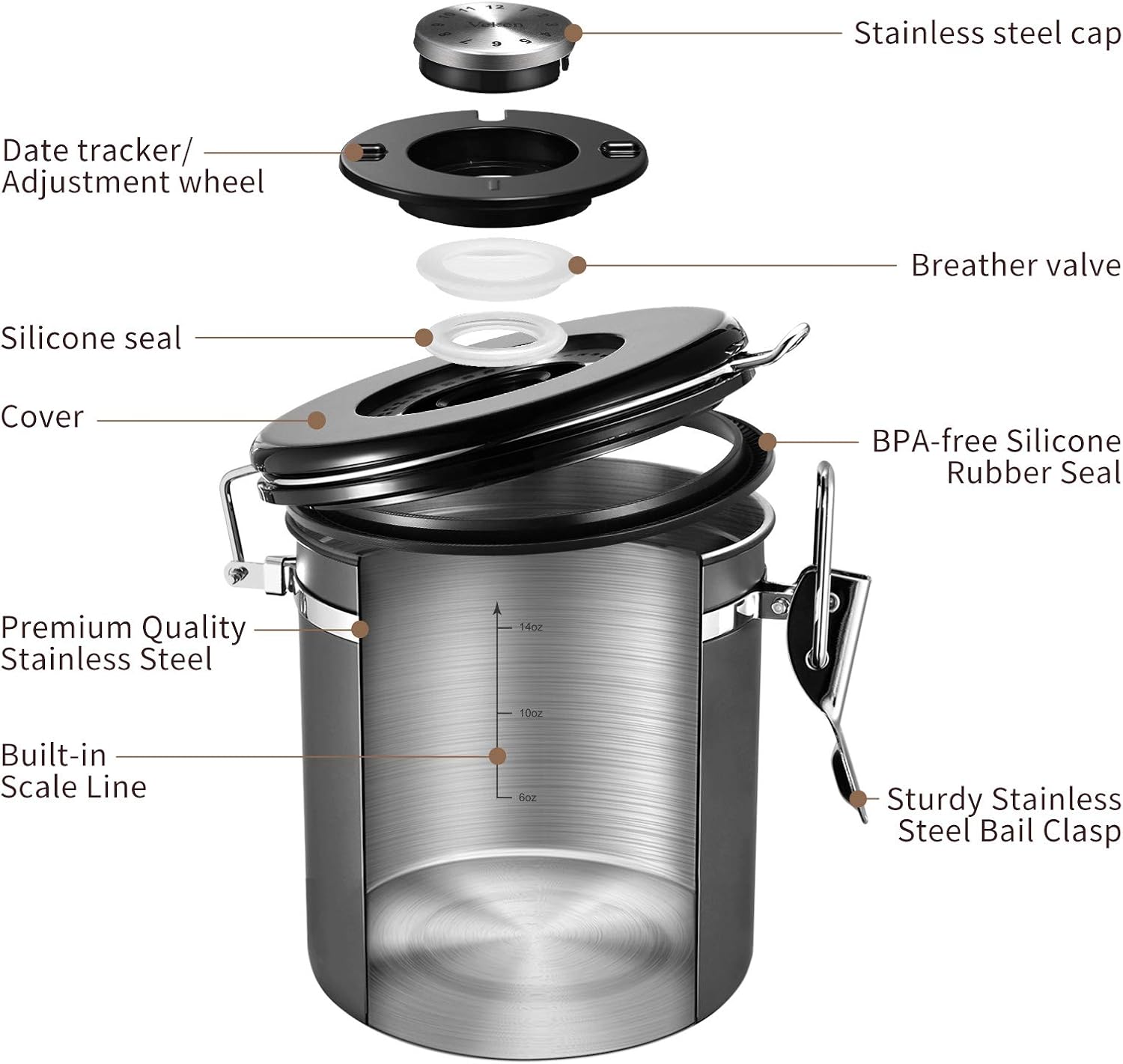 - 304 Stainless Steel - As a coffee lover, you must never compromise on the material and quality of your coffee container. Veken containers are made of thick, high quality stainless steel to create a comfortable environment for coffee beans.