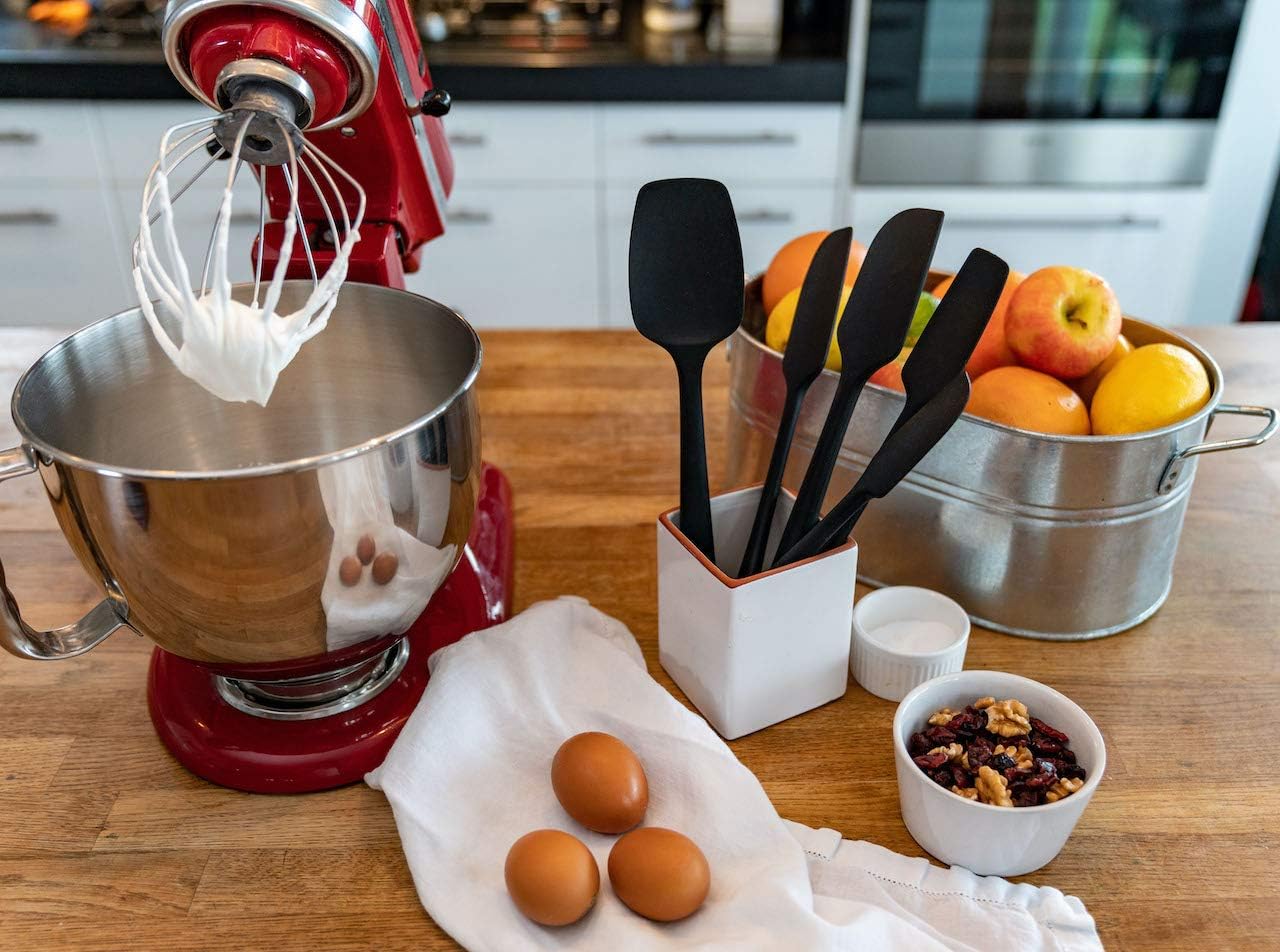 KITCHENLOVE Premium 600°F Heat Resistant 5 Piece Silicone Spatula Set for Baking, Cooking, Mixing - Non-Stick with High Grade S-Iron Steel Core - One Piece Seamless Design - BPA Free (Black)