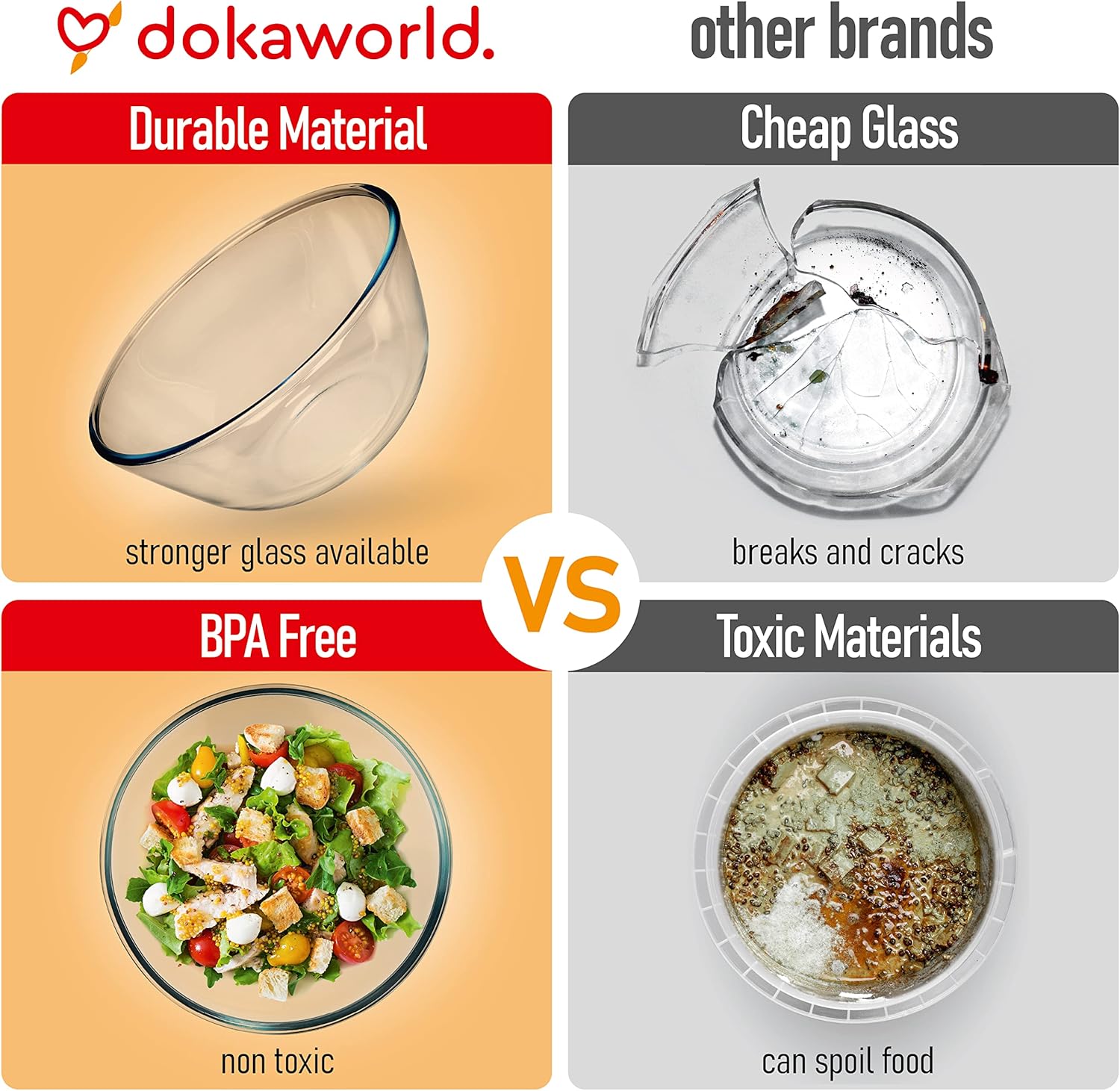 - ULTRA DURABLE clear glass bowls are made of BOROSILICATE GLASS, up to 5 times stronger than ordinary glass. Our glass nesting bowls are microwave, oven, freezer, and dishwasher safe.