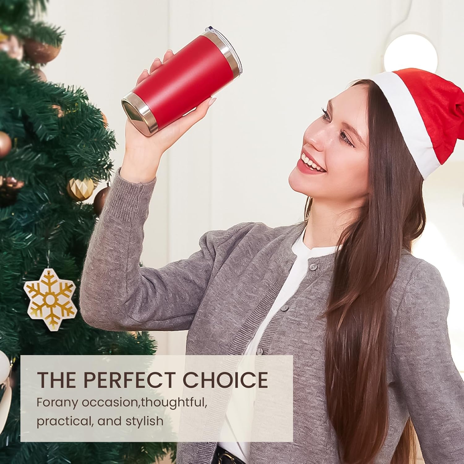 MEWAY 20oz Tumbler 4 Pack Double Wall Vacuum Insulated Travel Mug Bulk, Stainless Steel Tumblers with Lid and Straw, Powder Coated Coffee Cups for Cold & Hot Drinks (Red, Set of 4)