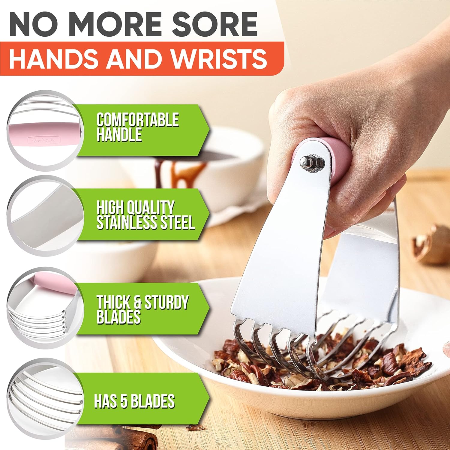 Spring Chef Medium Size Dough Blender For Baking, Stainless Steel Dough Cutter Tool, Manual Pastry Cutter Tool with Sharp & Thick Blades, Dishwasher Safe Pastry Blender for Easy Mixing - Pink Lemonade