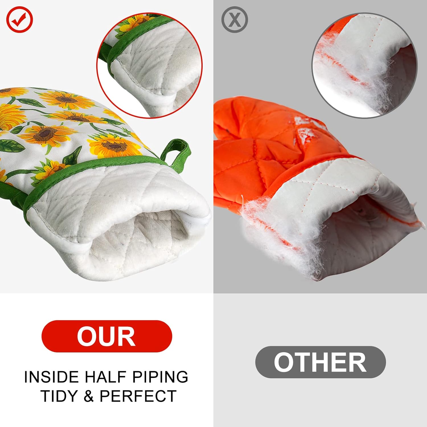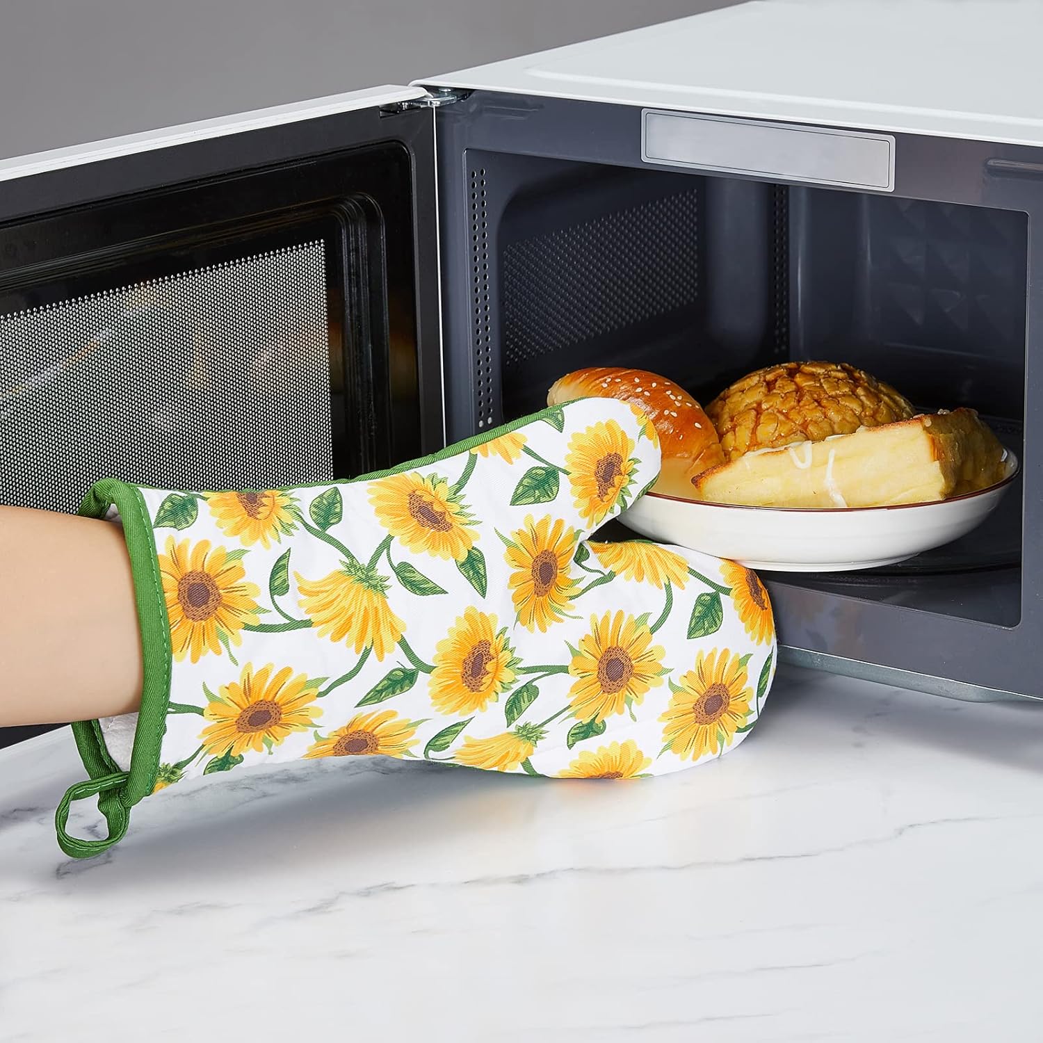 Oven Mitts and Potholders Dish Towles Set 100% Cotton for Perfect for Gifting, Baking, and Everyday Cooking Durable Heat Resistant for Kitchen and Machine Washable (3-Piece Sunflower)