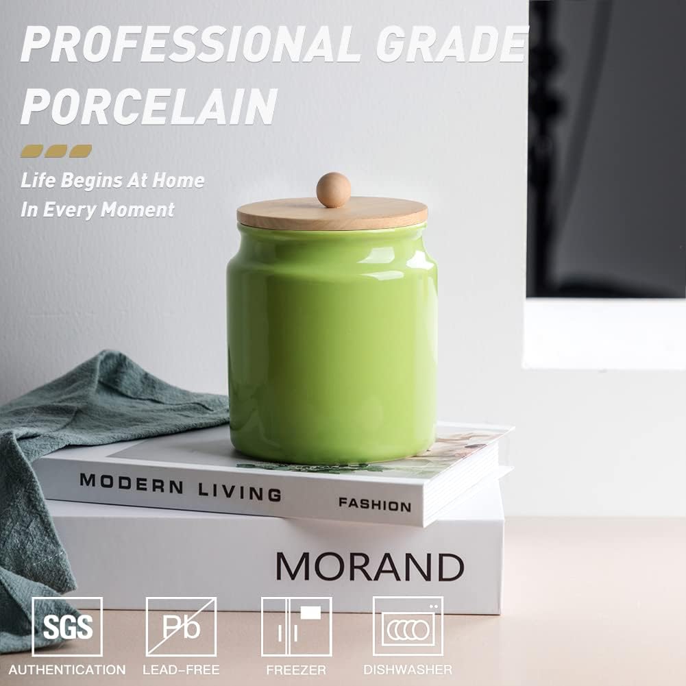 Sweejar Ceramic Kitchen Canisters, 28 FLOZ Porcelain Food Storage Jar with Airtight Seal Wooden Lid, Home Container Serving for Coffee Beans, Tea-leave, Sugar, Salt and More, Tool Bucket (Green)