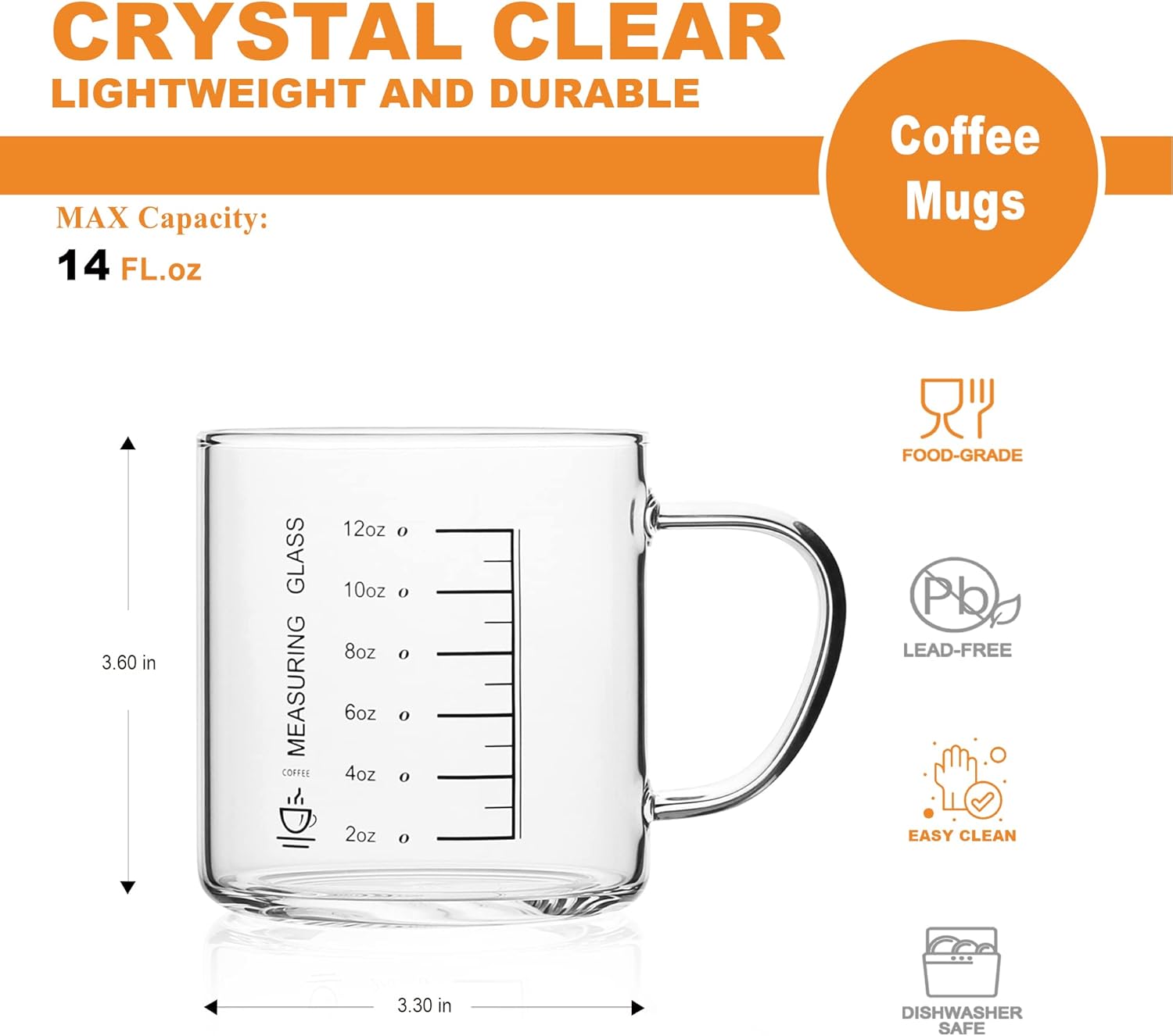 - IMPRESSIVE COFFEE MUGS:The simple and stylish coffee cup has a measuring function,which can help you better control the concentration of coffee,so as to better enjoy your Blue Mountain coffee or any other solid beverage.Interestingly,you can know how much water you drank today.These mugs are crystal clear,light weight and the perfect size.