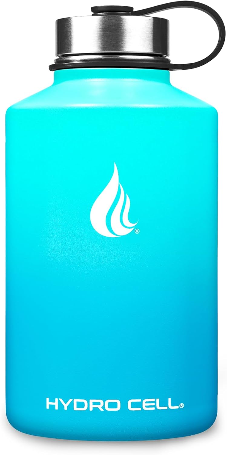 HYDRO CELL Stainless Steel Insulated Water Bottle with Straw - For Cold & Hot Drinks - Metal Vacuum Flask with Screw Cap and Modern Leakproof Sport Thermos for Adults (Teal/Blue 64oz)