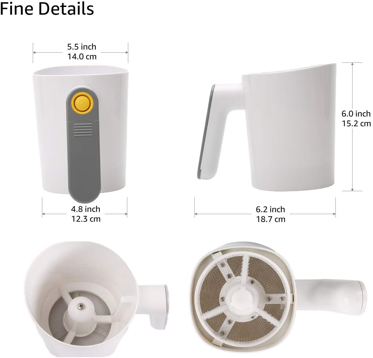 - Effortlessly Sift Flours in Seconds with One Click: this battery operated electric flour sifter for baking makes sieving ingredients more efficient and easier than turning a crank or squeezing a handle, ideal for those with arthritis and joint pain and saving you time and effort in the kitchen