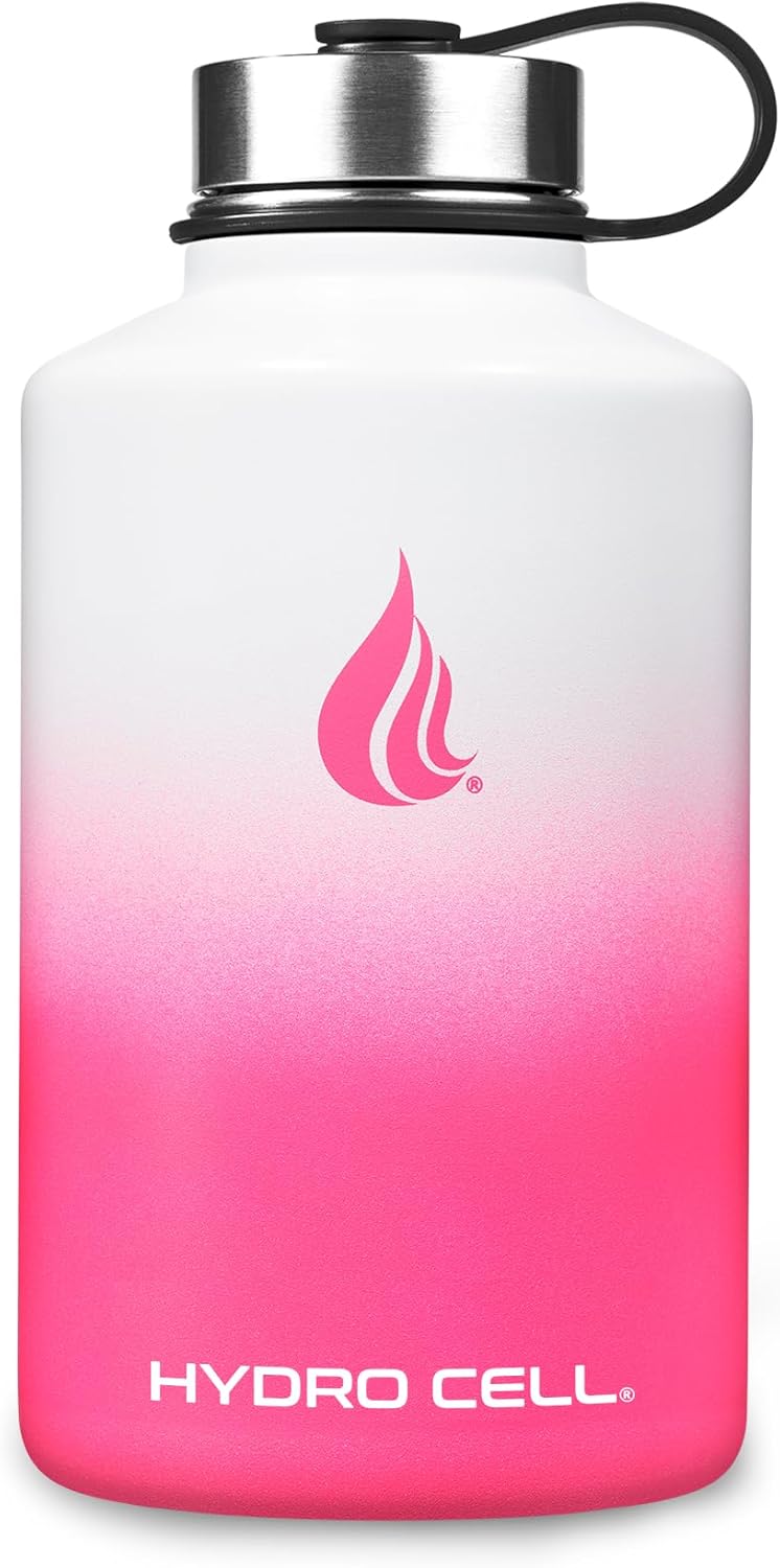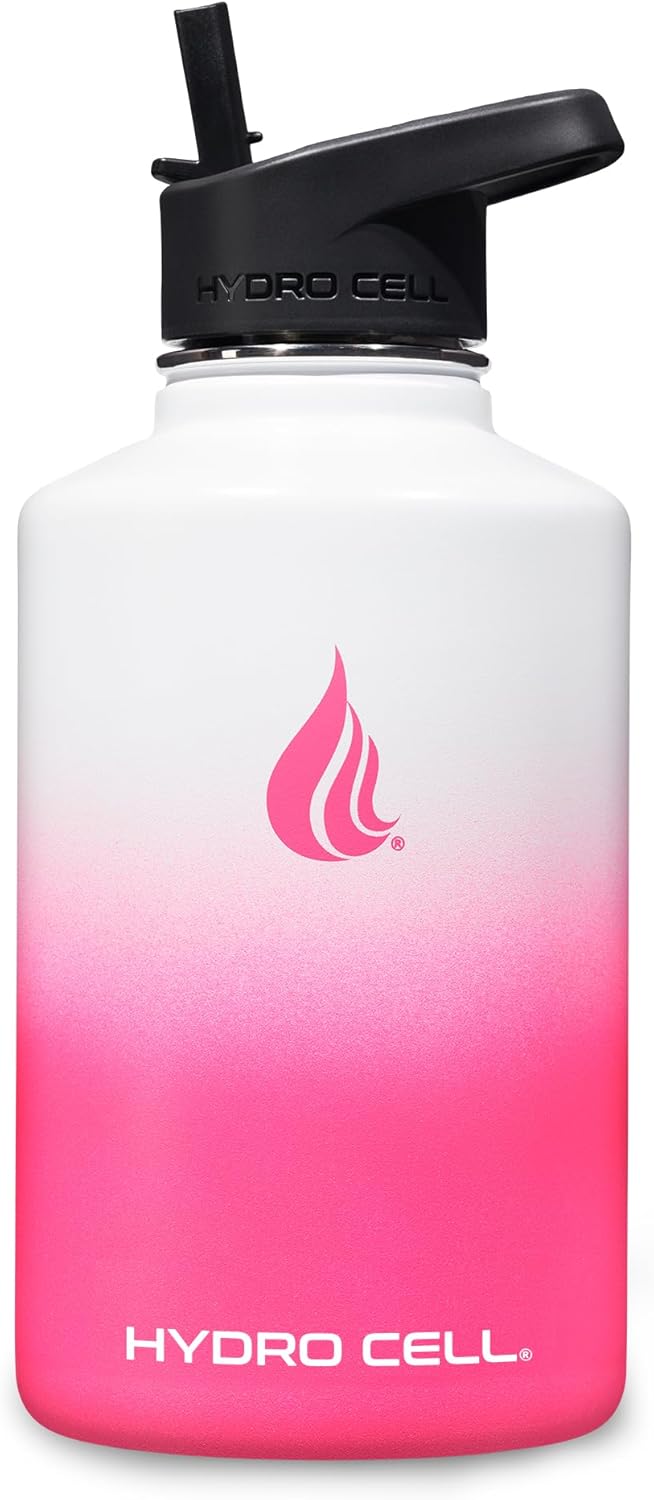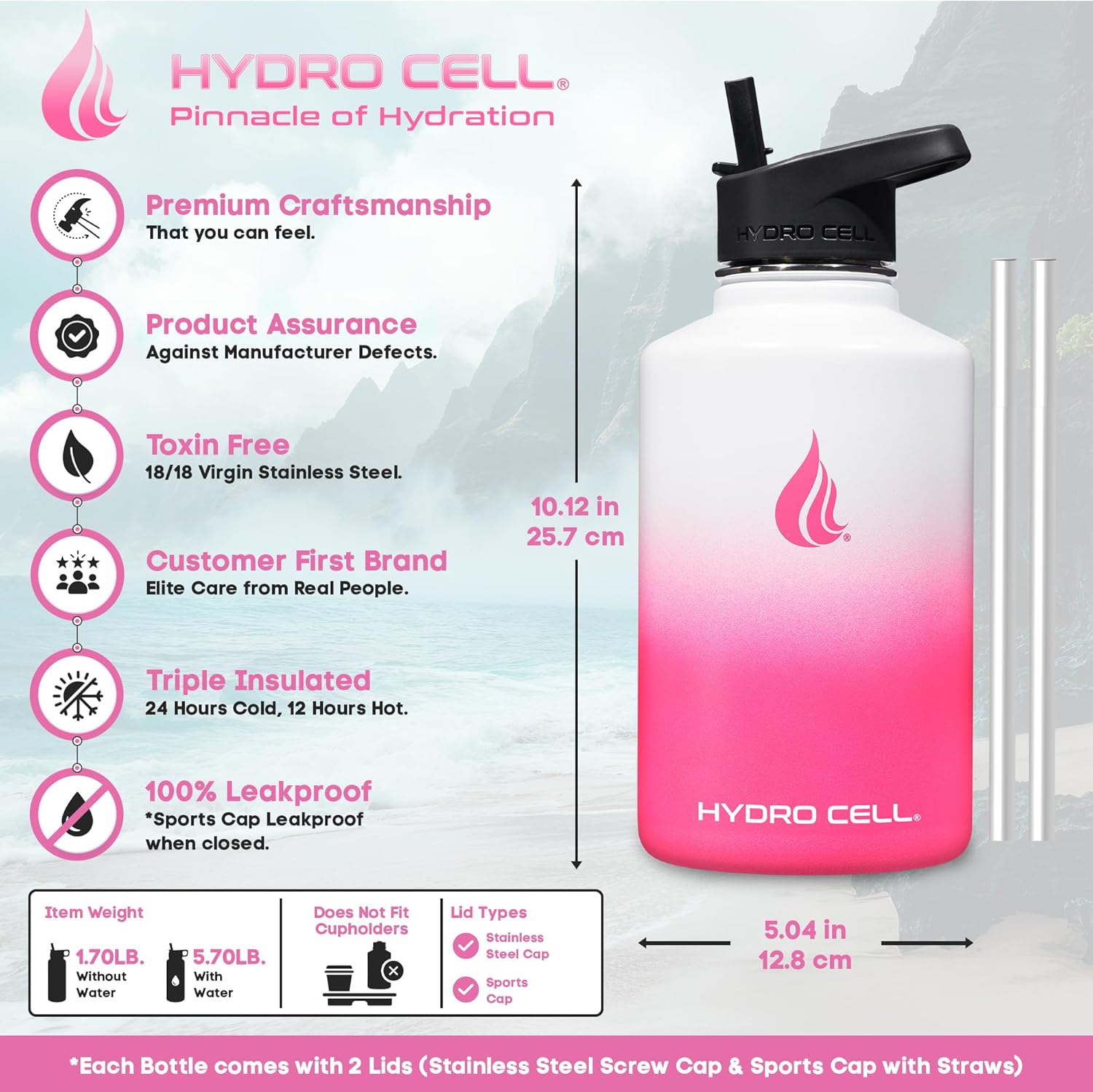 HYDRO CELL Stainless Steel Insulated Water Bottle with Straw - For Cold & Hot Drinks - Metal Vacuum Flask with Screw Cap and Modern Leakproof Sport Thermos for Adults (White/Pink 64oz)