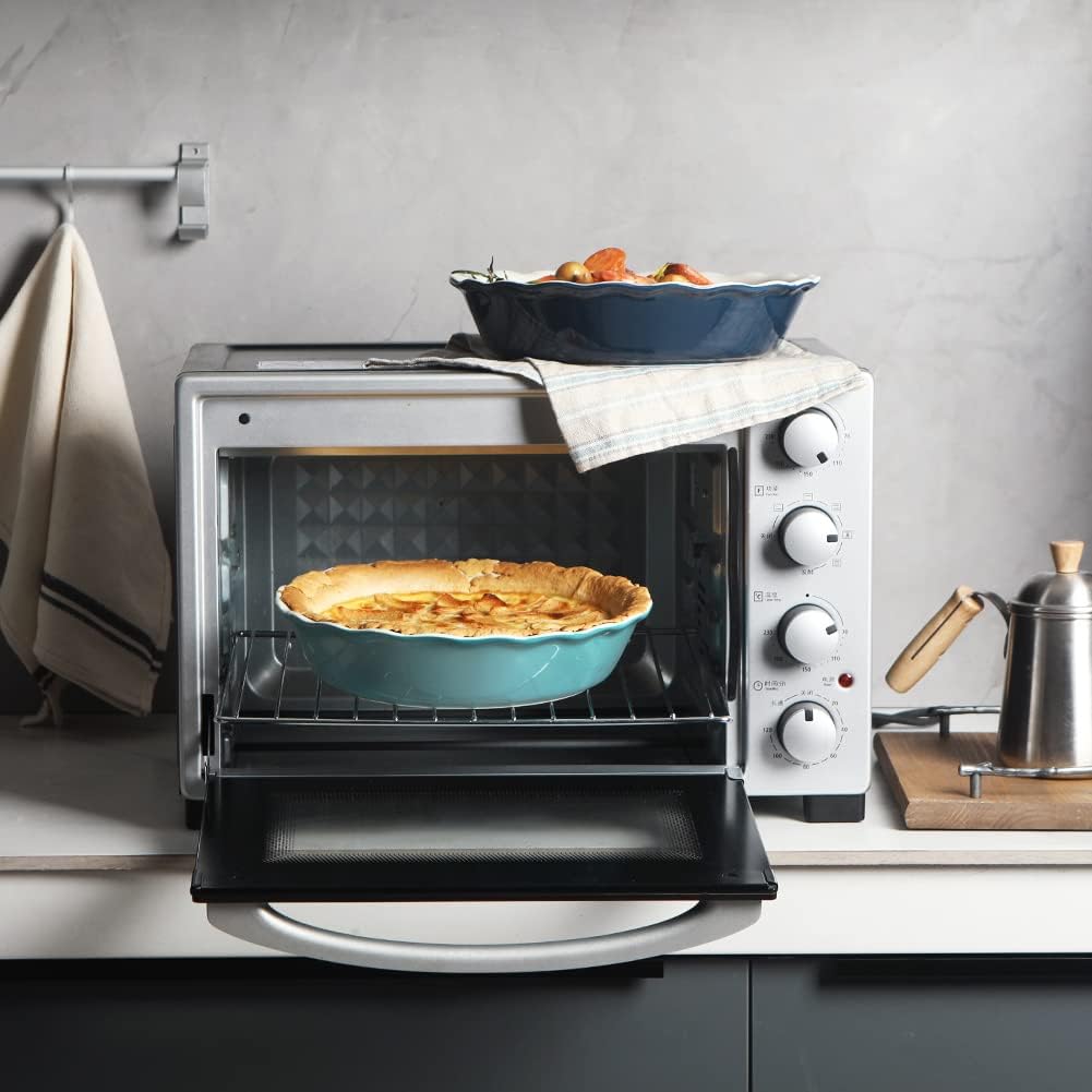 Sweejar Ceramic Pie Pan - 10 Inch Round Baking Dish for Dinner, Non-Stick with Soft Wave Edge for Apple, Pumpkin, Pot Pies (Turquoise)