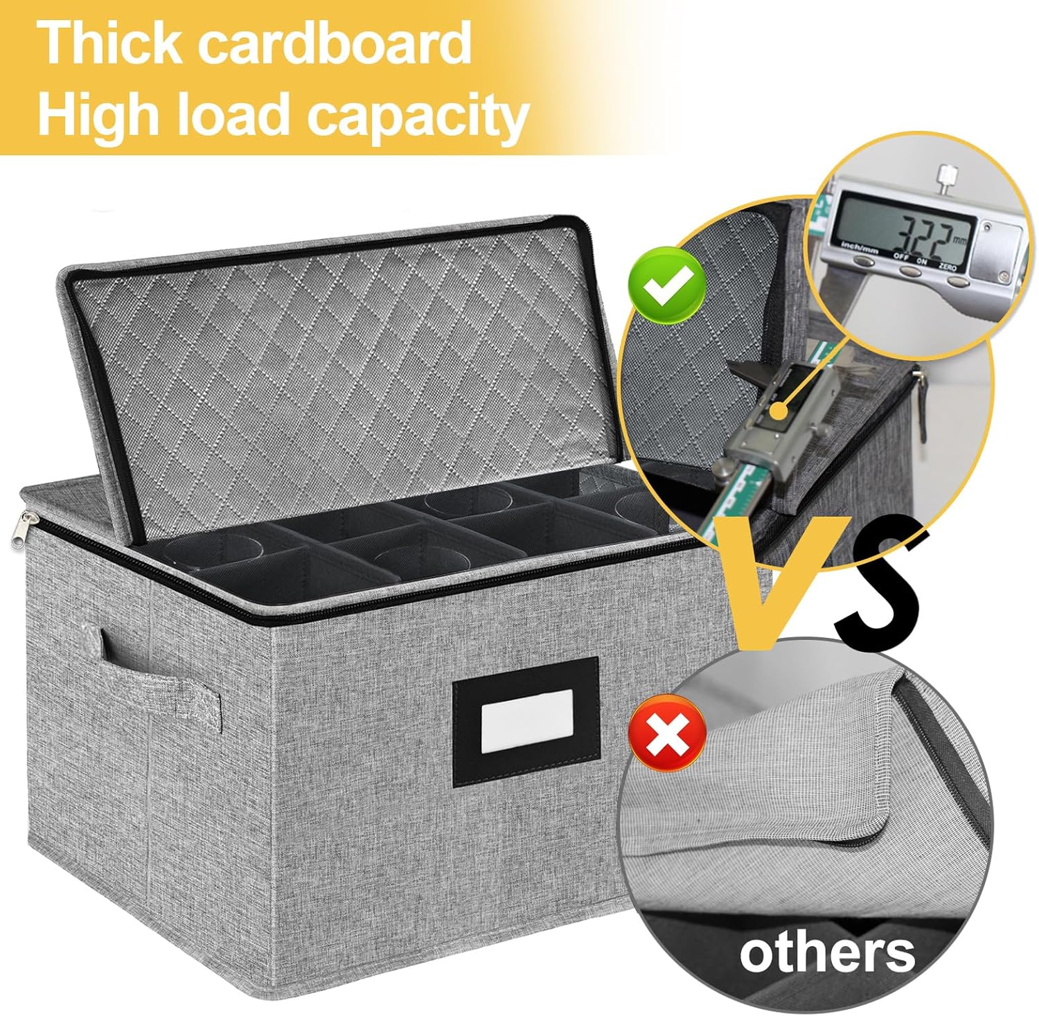 - 🍷 Premium durable material - Stackable wine glasses storage box is made of premium TC fabric and sturdy thick cardboard,the lid made with thick cardboard inside,the side pieces provide additional protection,so it's more sturdy than others.