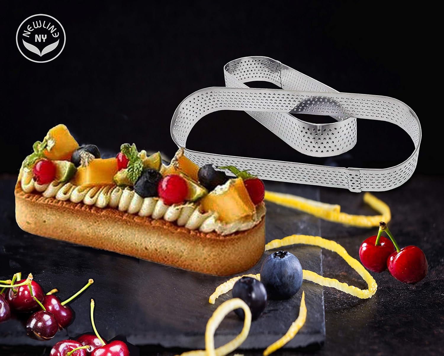 NewlineNY Stainless Steel 6 Pcs Perforated Oval, Rectangular, Square Tart Rings Molding Plating: 2 of each (5" x 1.5") + (4" x 1.5") + (2.8" square) x (0.8" H) Sizes