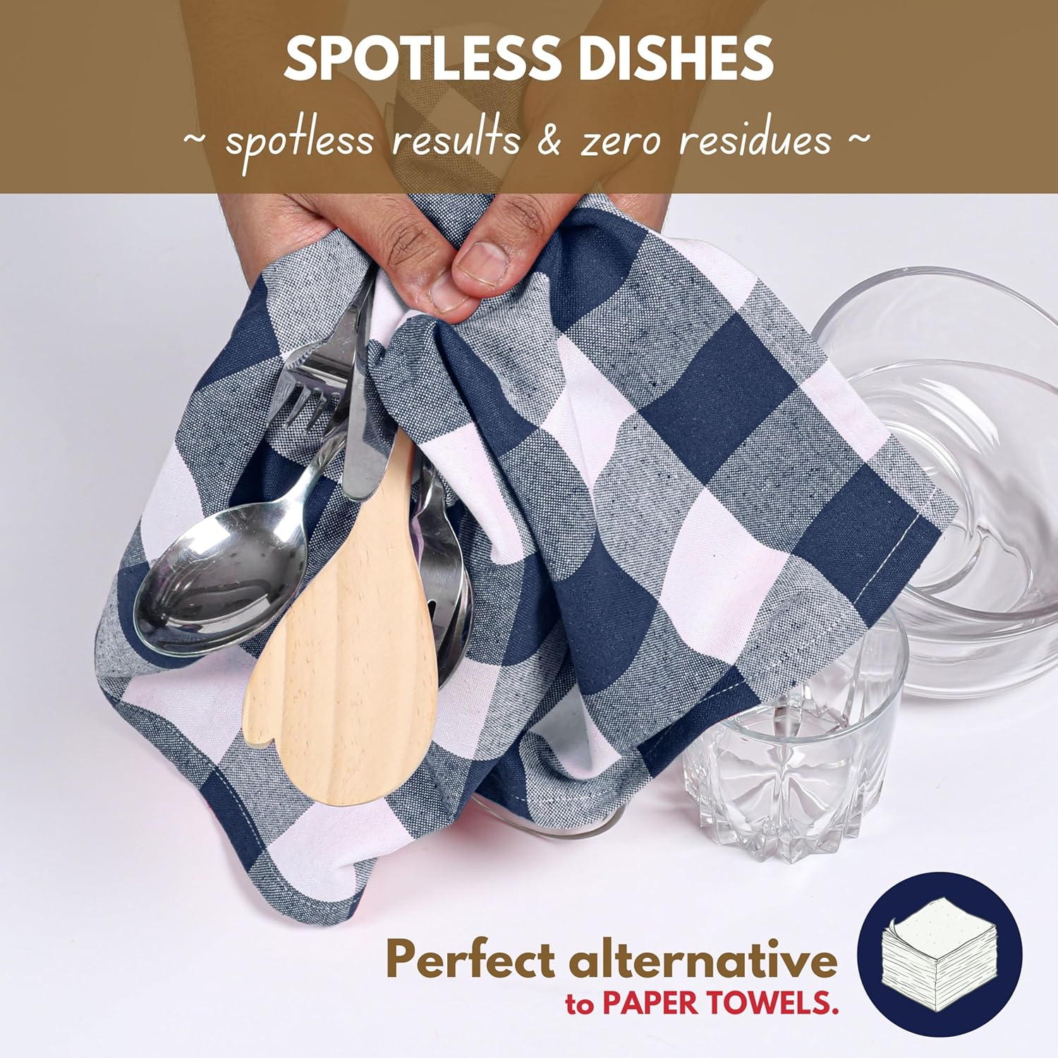 Native Fab 12-Pack Kitchen Towel with Hanging Loop 16x26 inches, Cotton Buffalo Check Kitchen Towels for Cleaning Drying, Washcloths Soft & Absorbent Cloth Rags, Bar Towel, Dish Cloth, Navy