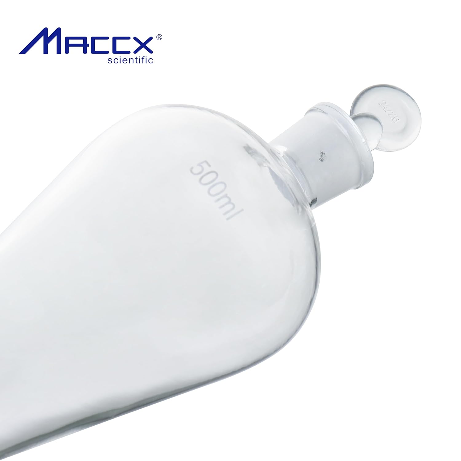 Conical Separatory Funnel with Pear Shape, Vol.500ml, 3.3 Borosilicate Glass Material, Ground-in Glass Stopper and Stopcock, SFG500-001
