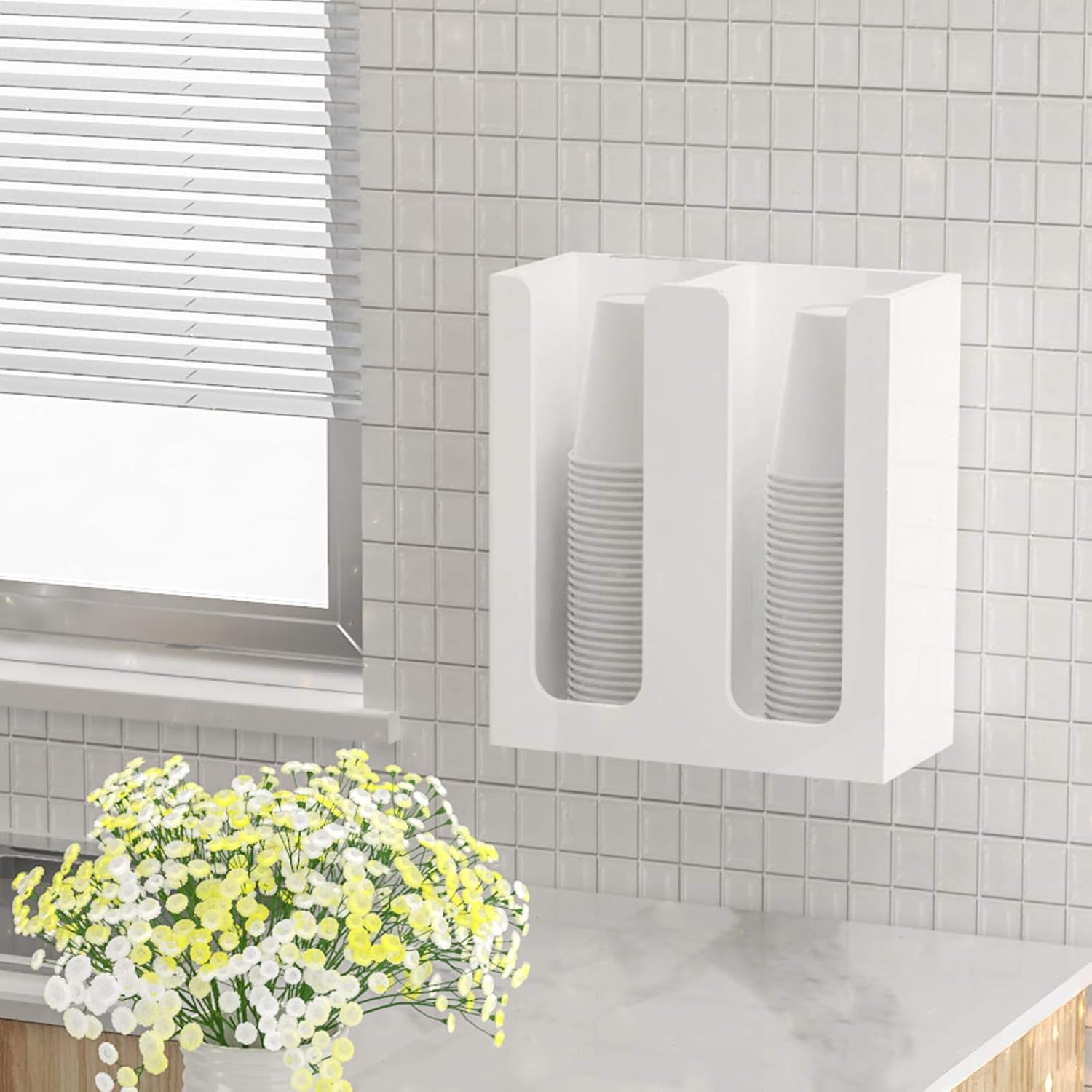 - Functional - comes with 4 pre-drilled holes on the back of the cup dispenser, it can be either mounted on wall or placed on countertops of your bathroom, kitchen, office, coffee station.