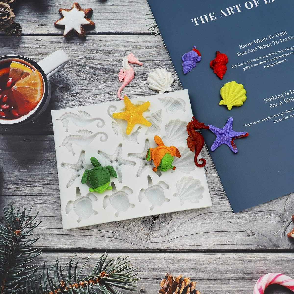 Sakolla Marine Theme Fondant Silicone Molds, Seashell, Conch, Seahorse, Starfish, Tortoise Silicone Mold for Cake Decoration, Chocolate Candy Sugar Craft