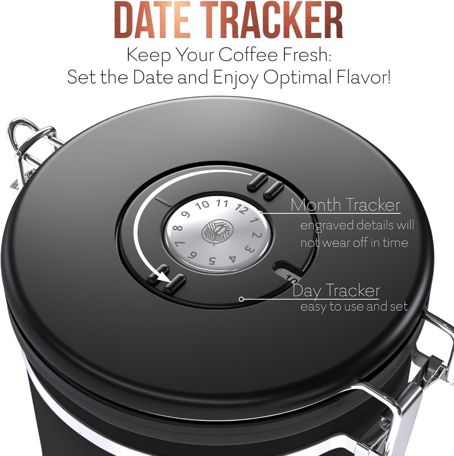 - Built-in Date Tracker for Maximum Freshness – Never forget when you stored your coffee! The integrated date dial lets you track storage time, ensuring every brew is at peak flavor.