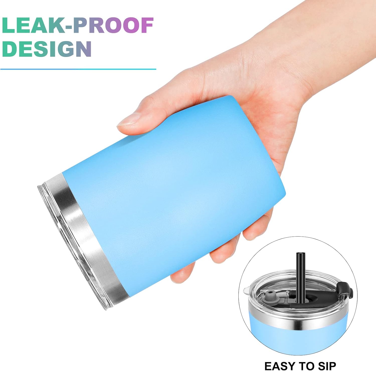 - Colored Powder Coated Tumbler: The stainless steel kids cups is crafted with stylish color powder coating, gives you multiple color options. It's cool to touch when filling with hot water and also sweat proof with cold water, always keep your hands comfortable while holding the stainless steel cups for kids