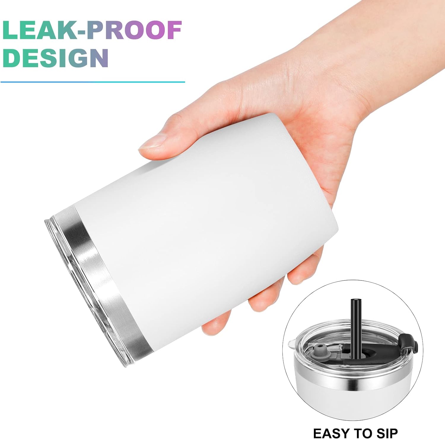 VEGOND Stainless Steel 12 oz Tumblers bulk Vacuum Insulated Double Wall Travel Tumbler with Lid and Straw Reusable Tumbler, White 1 Pack
