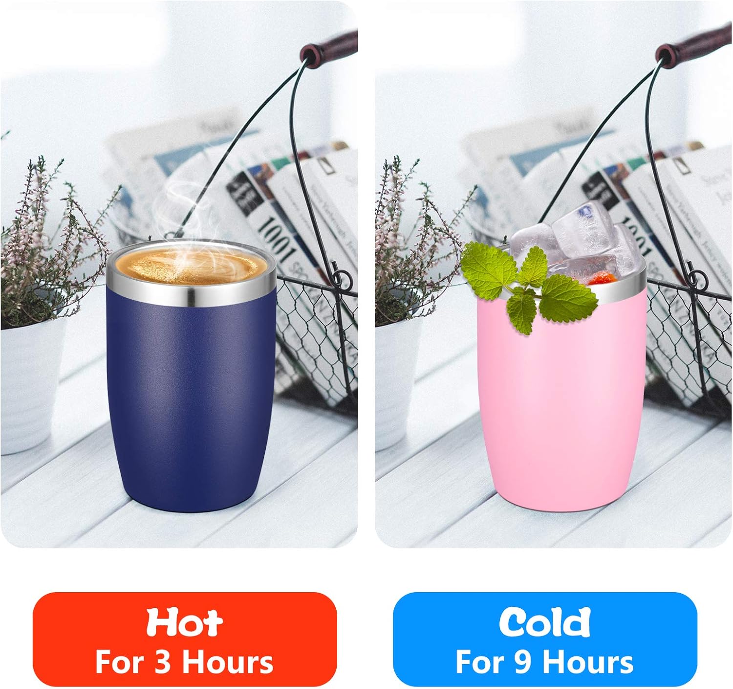- Hot and Cold Tumbler: Double wall tumbler ensure the 12 oz coffee tumbler incredibly good at temperature protection. Under normal temperature, the insulated tumblers keep your water hot for three hours and cold for nine hours