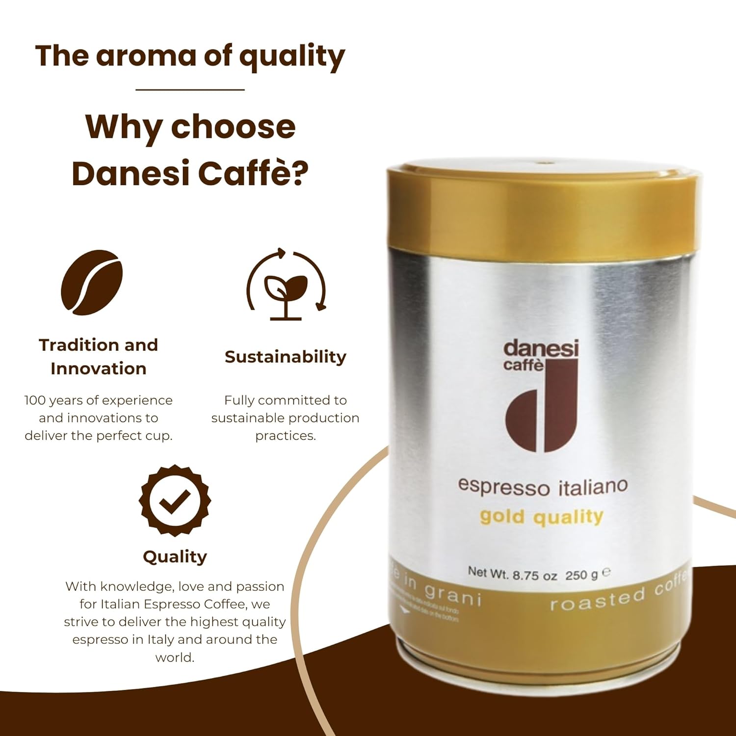 - Fresh Roasted Coffee Beans: Our Danesi Gold whole bean espresso blend is a perfectly balanced and bold whole bean coffee made with 100% premium quality espresso-grade Arabica coffee beans. Freshly roasted coffee beans are the best coffee beans!