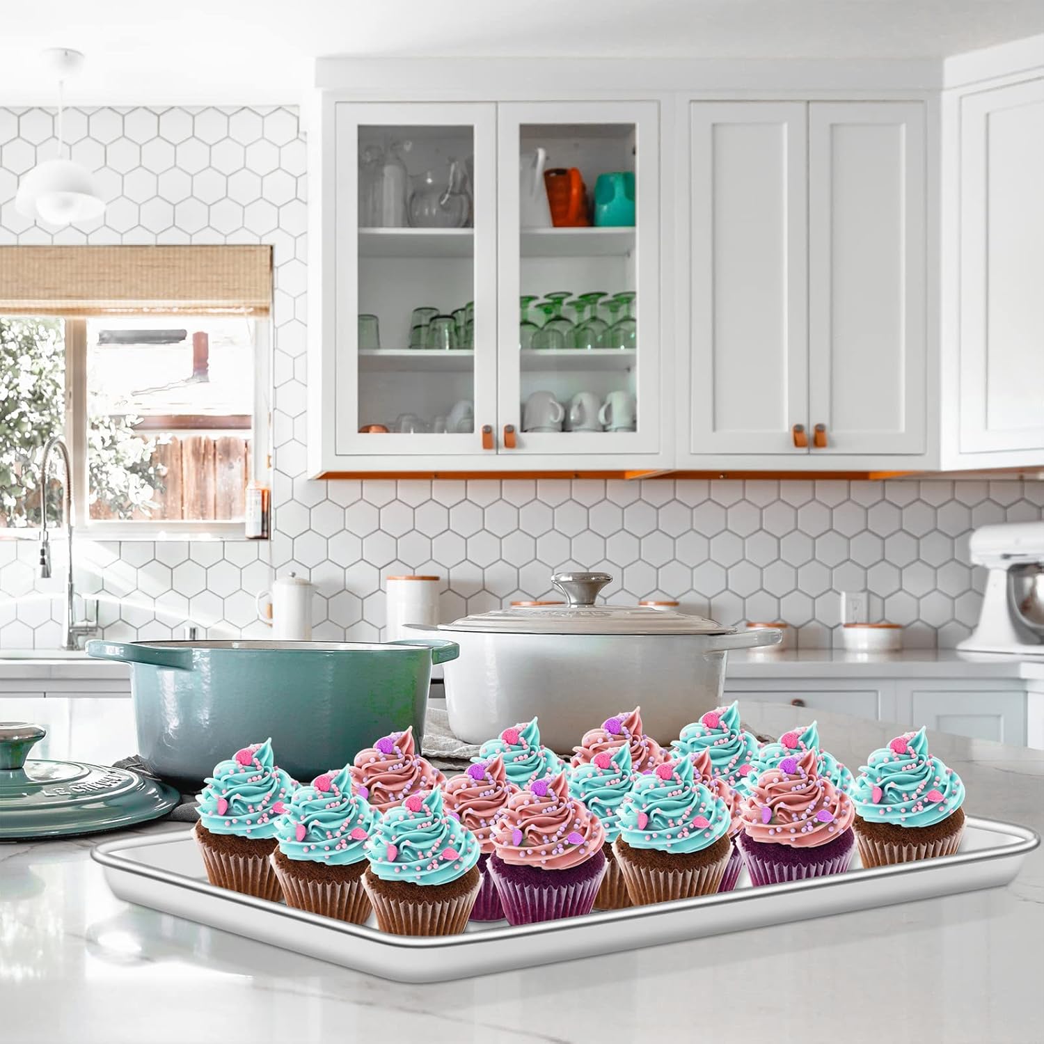 - 🍍 [SOLID CONSTRUCTION] Thick gauge with sturdy construction, these heavy-duty half sheet pans have a reinforced, rolled edge that provides extra strength to help resist warping in the oven. The cooling racks with raised feet facilitate air circulation for evenly baked goods. Feel sturdy and solid in hands, durable for serving many years.