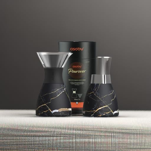asobu Insulated Pour Over Coffee Maker (32 oz.) Double-Wall Vacuum, Stainless-Steel Filter and Take on the Go Carafe (Midnight Marble)