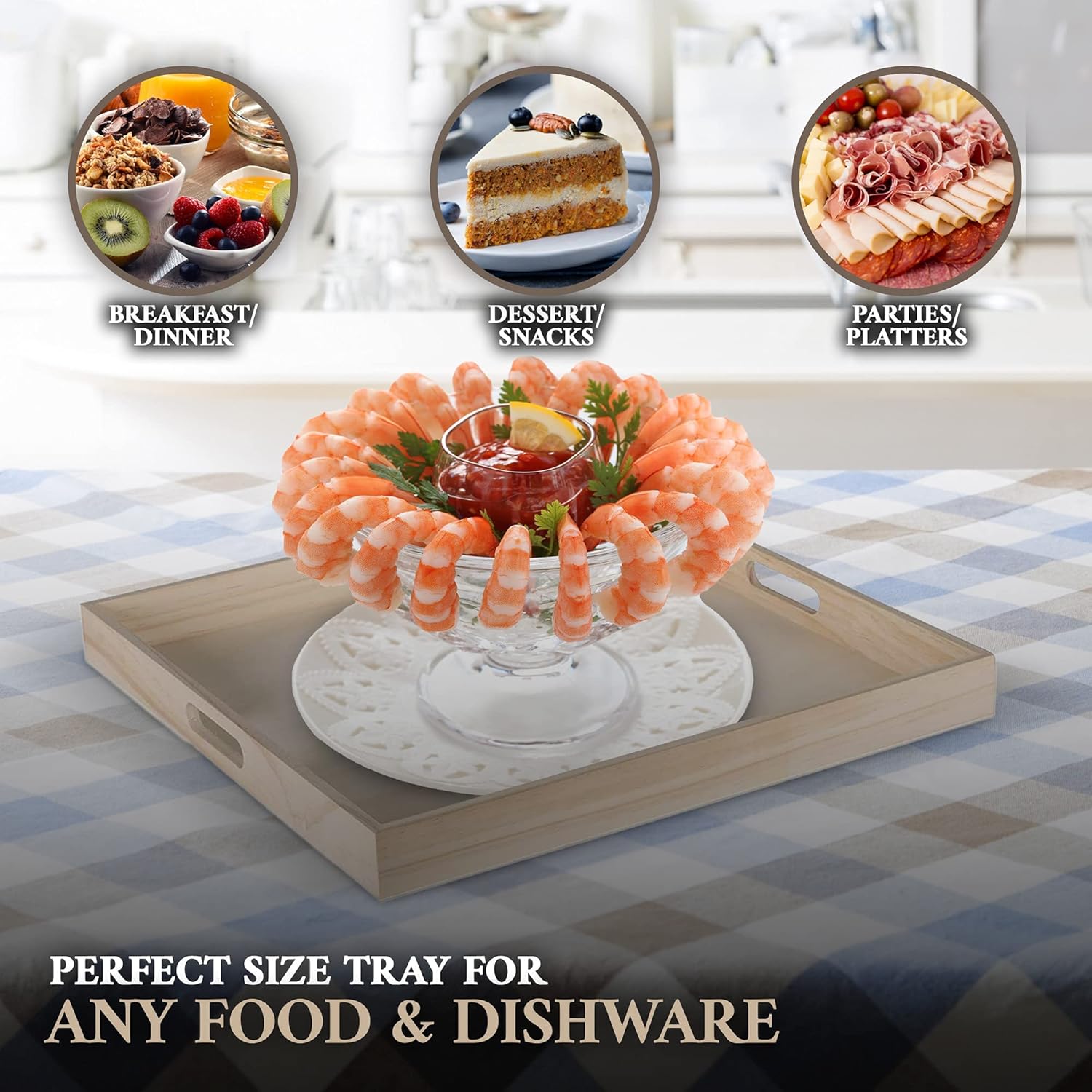 - DECORATIVE TRAYS FOR HOME DECOR: Our quality made, original wood grain serving trays are the perfect choice as your bathroom trays, holders, & organizers, guest room decor, a tray for kitchen counter, or as a coffee tray on your ottoman. This wood decor is durable, sturdy, and is made of environment-friendly material which adds a natural touch to any room.