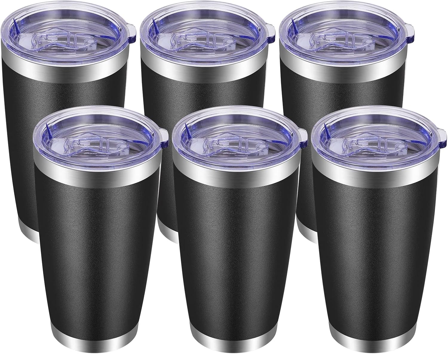 VEGOND 20oz Tumbler with Lid and Straw Stainless Steel Tumbler Cup Bulk Vacuum Insulated Double Wall Travel Coffee Mug Powder Coated Coffee Cup(Black 6 Pack
