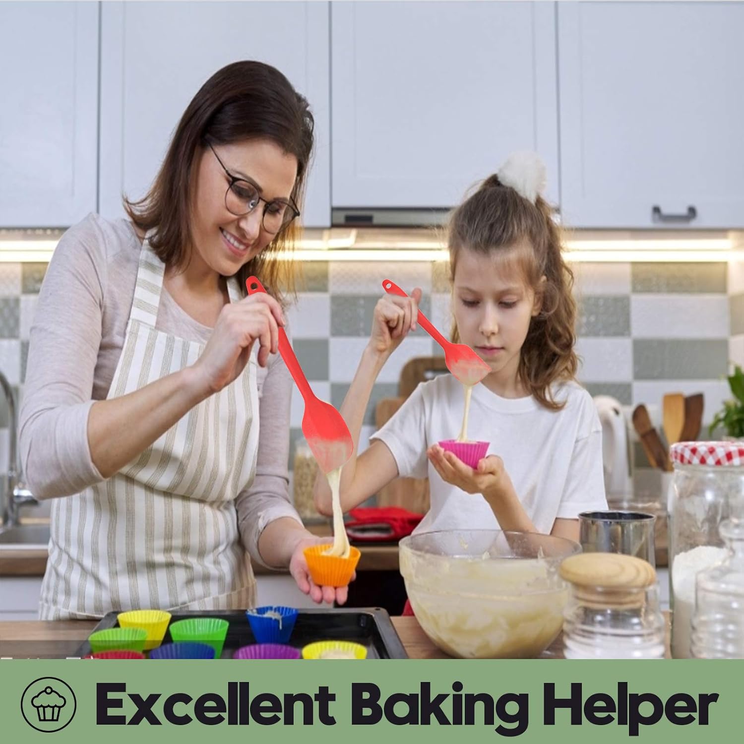 Heat Resistant Silicone Spatulas Set Food Grade Silicone Seamless One Piece Design BPA-Free,Non-Stick,Dishwasher Safe,Cooking and Mixing Set of 6PCS-red(red)