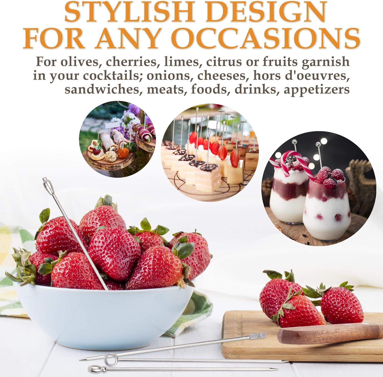 - Multi-Purpose: These cocktail picks can be used for a variety of purposes, from stuffing olives and garnishing drinks to serving appetizers and snacks like club sandwiches at your next barbeque or party.