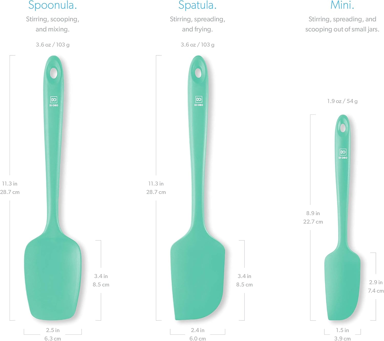 DI ORO Silicone Spatula Set - Rubber Kitchen Spatulas for Baking, Cooking, & Mixing - 600°F Heat-Resistant & BPA Free Silicone Scraper Spatulas for Nonstick Cookware - Dishwasher Safe (3pc, Mint)
