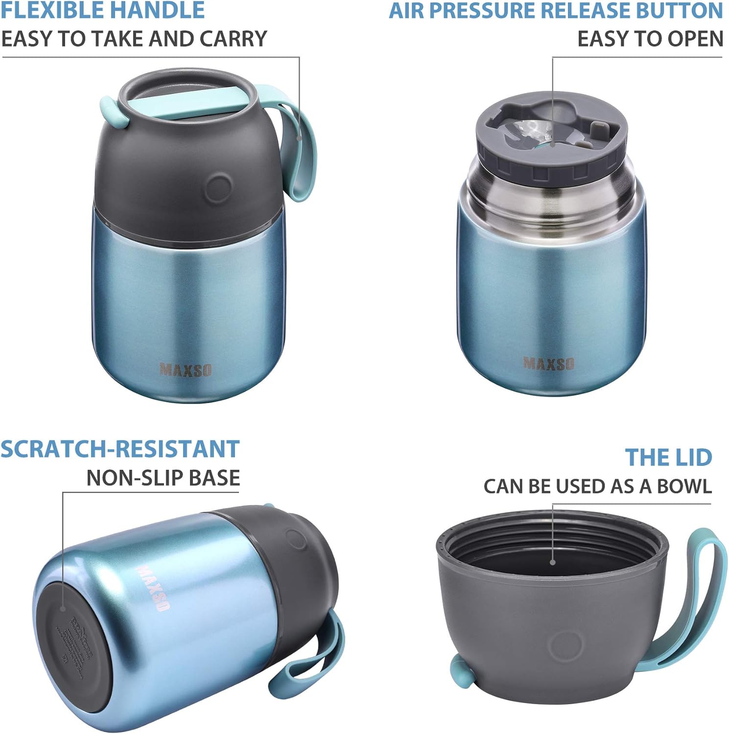 - 【Attractive & Practical Insulated Food Container】It takes top marks for its superior insulation, 304 stainless steel material, BPA free, no PVC, 17oz capacitie and a versatile design that works for toddlers, kids and adults. Use this Insulated food container for hot / cold foods such as pasta, soup, chili or milkshake. It keeps food warm for about 12 hrs and cold for 24 hrs. With our Insulated lunch container, you will never have to endure cold lunches and salads in winter!