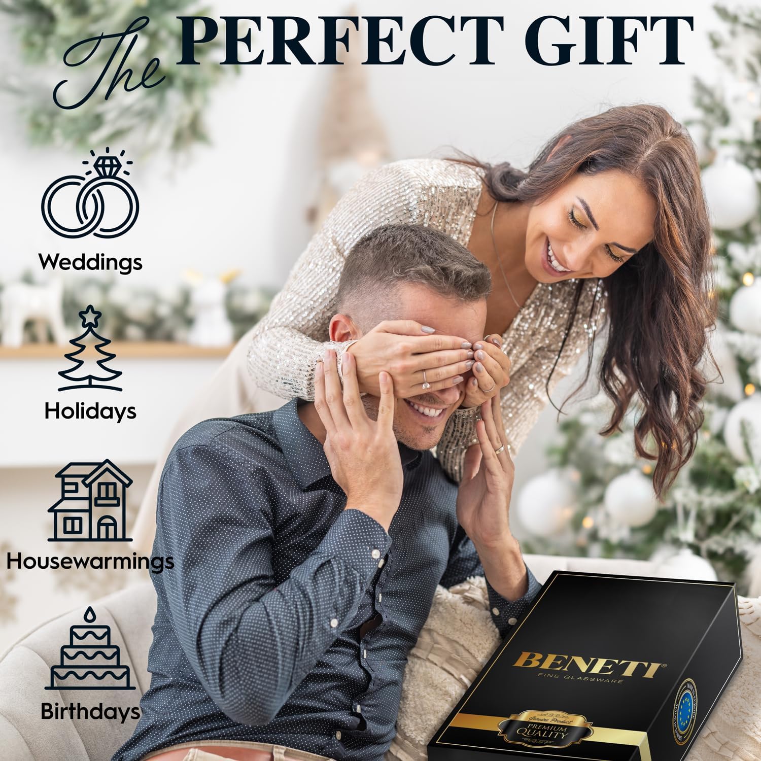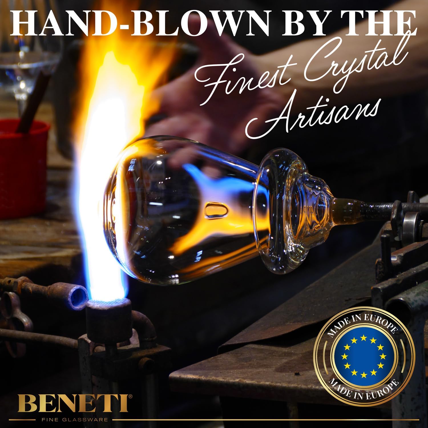 BENETI European Made Colored Martini Glasses Set of 6 Stemless Cocktail Glasses - 8 Oz, Dishwasher Safe, Crystal Glass Cups for Partys