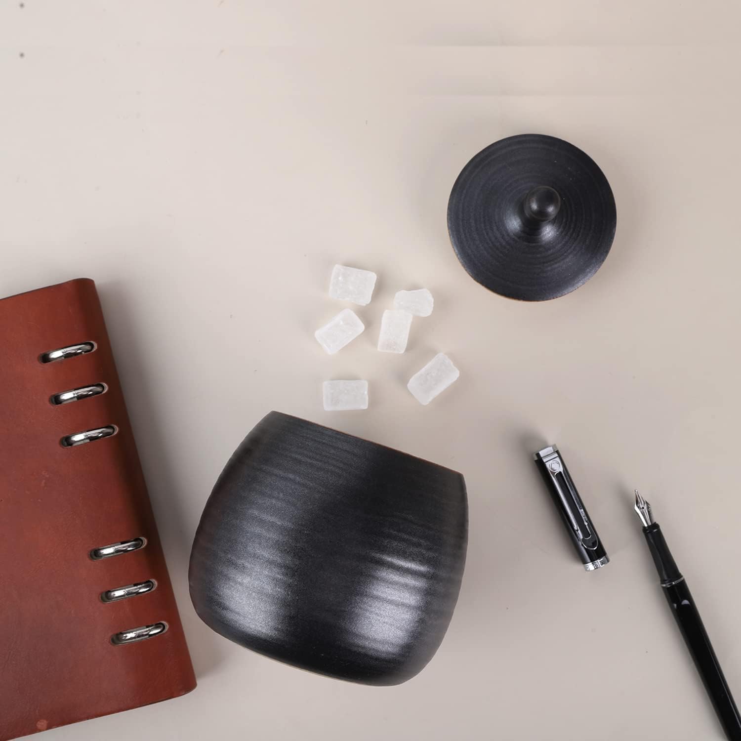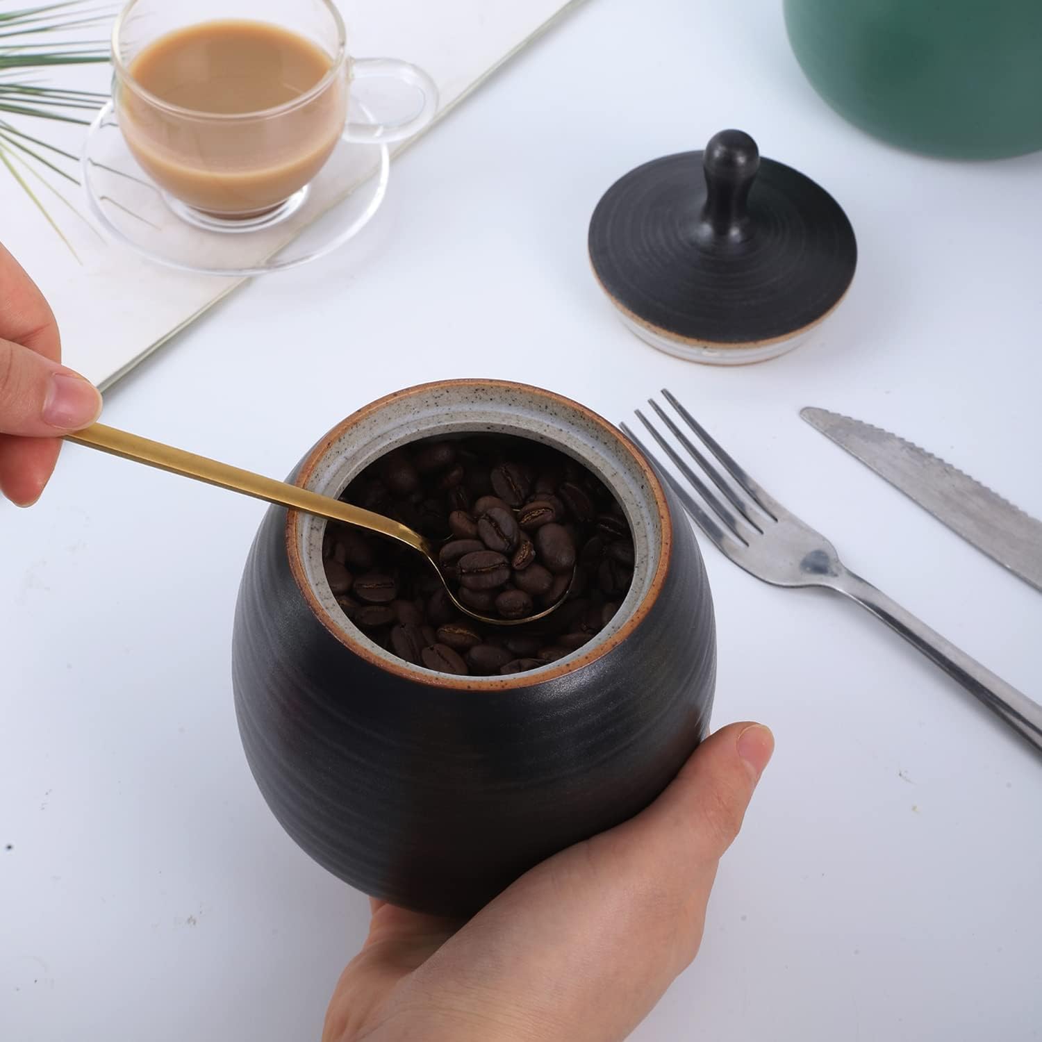 Kitchen Canisters Vintage Ceramic Food Storage Jar with Airtight Lid for Tea, Coffee, Herb, Sugar, Spice, Nuts (Black)