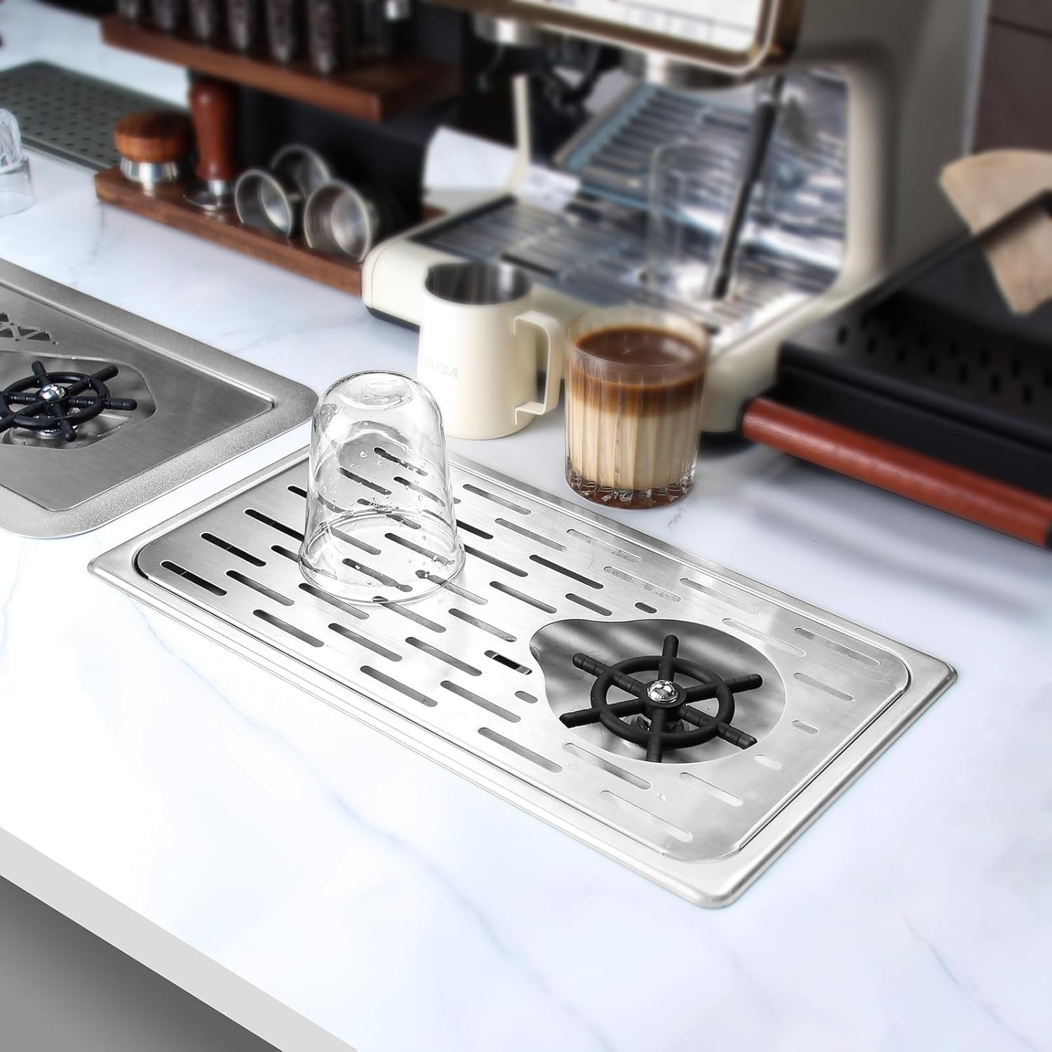 DIBTSA Pitcher Rinser, Espresso Rinser with Spray, Drain and Drip Tray, Stainless Steel Bar Glass Rinser for Sink, Cup Washer for Home Kitchen Hotel Cafe Restaurant (16.7x9.1x1.2 Inch)