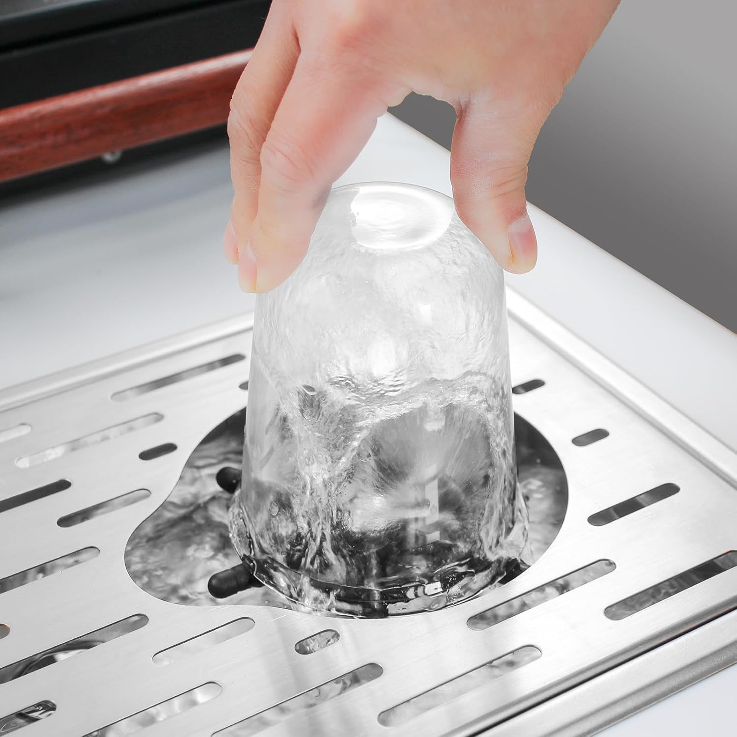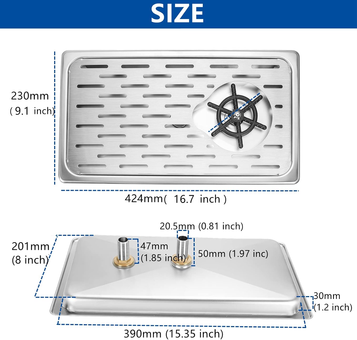 - Convenience And Practical: The water inlet and outlet are set to ensure that the dirty water is quickly drained out and keep the sink clean,The finely crafted stainless steel drip tray provides enough place for the cleaned cups to dry , not easy to rust and not easy to corrode.Equipped with two pieces braided hose inlet pipe