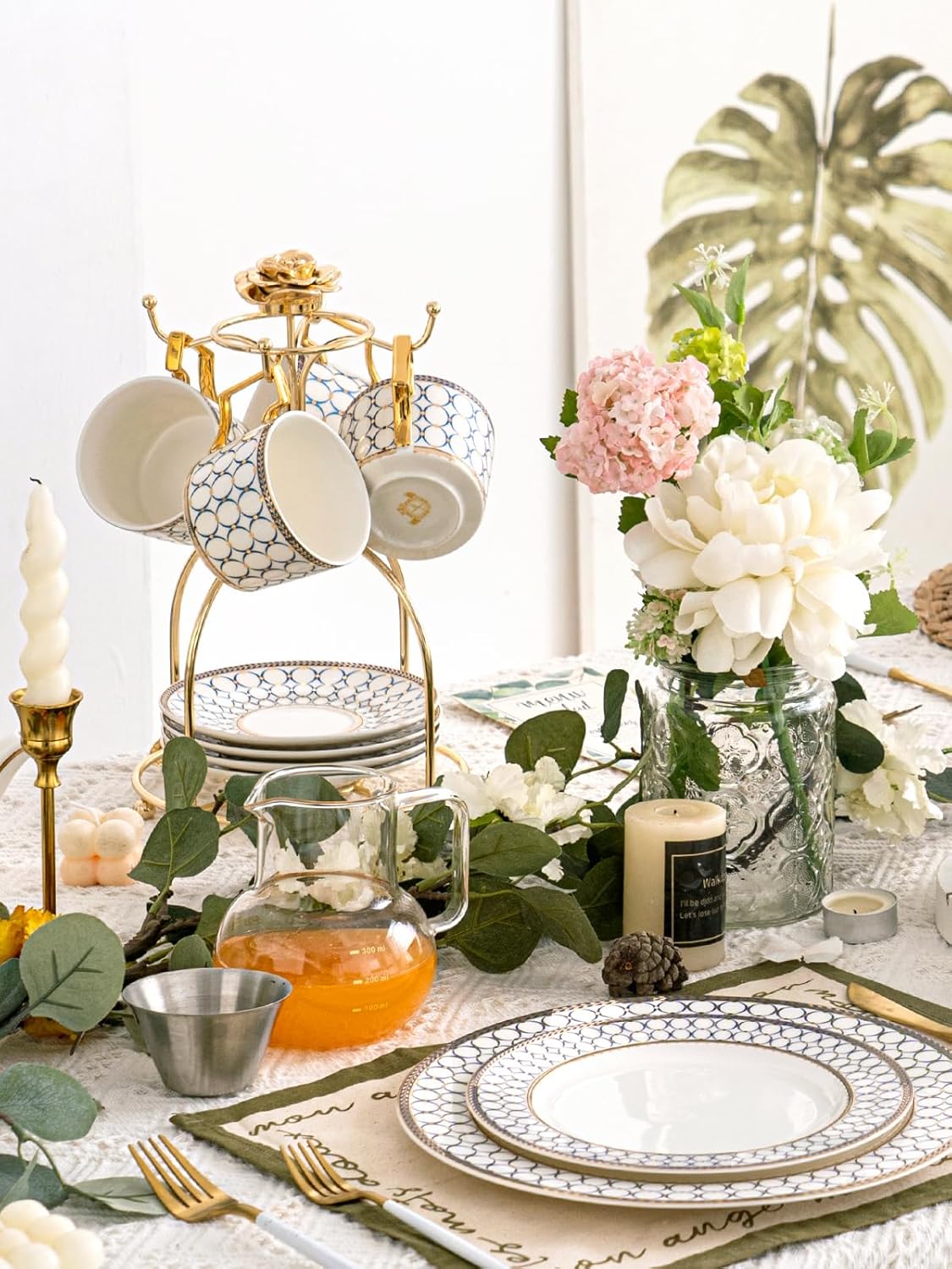 - 【Environmental protection porcelain】: As the basic guarantee of European and American society, it is consistent with Europe and the United States in terms of product quality. lead free, safe and healthy.Note:Not suitable for use in the microwave. We recommend avoiding the use of the dishwasher if possible, in order to better protect the surface design and the golden handle.