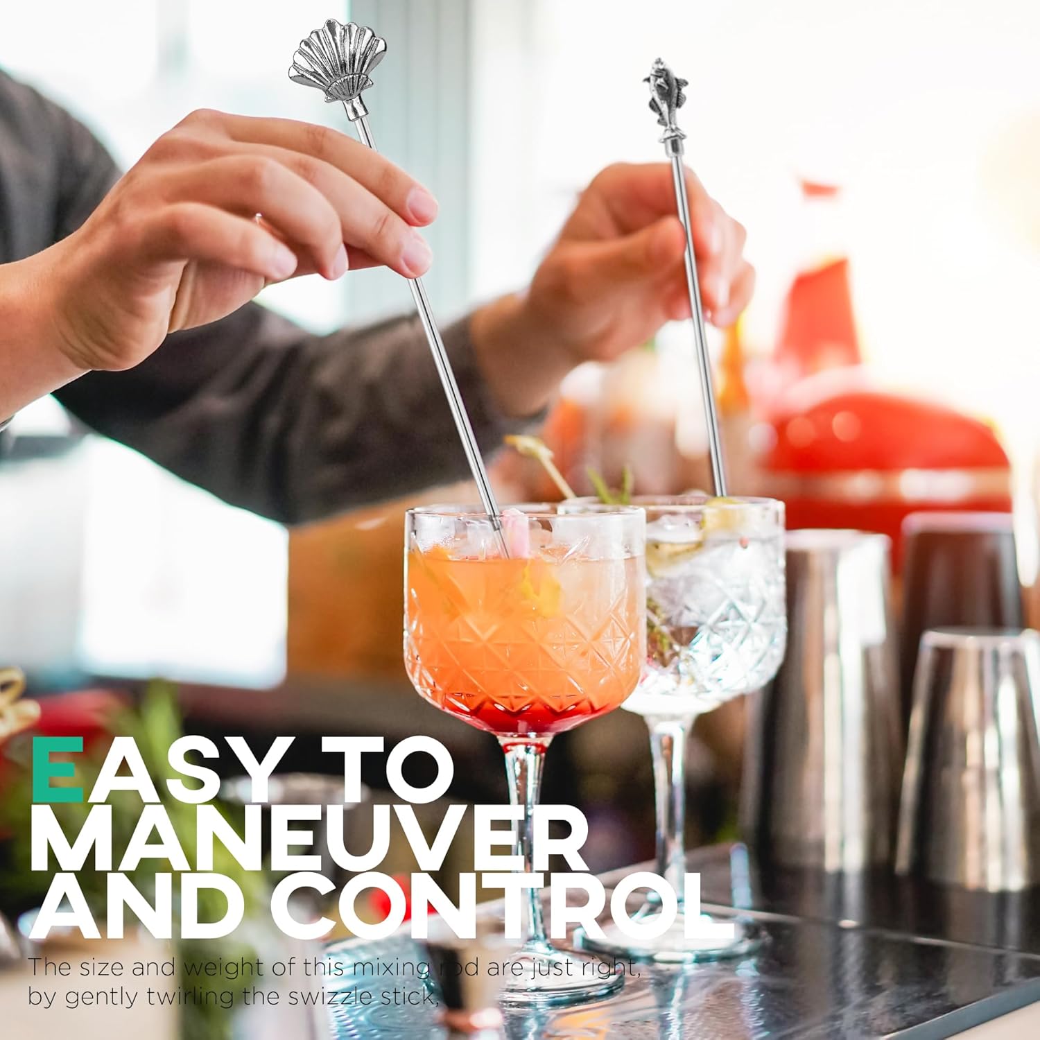 - OPERATION: The stirrer's head is adorned with an ocean animal decoration, not only adds a touch of character to your barware but also serves as a functional handle, making it easy to maneuver and control the rod with precision. The size and weight of this mixing rod are just right, by gently twirling the swizzle stick, you can effectively blend the flavors without disturbing the ice or garnishes.