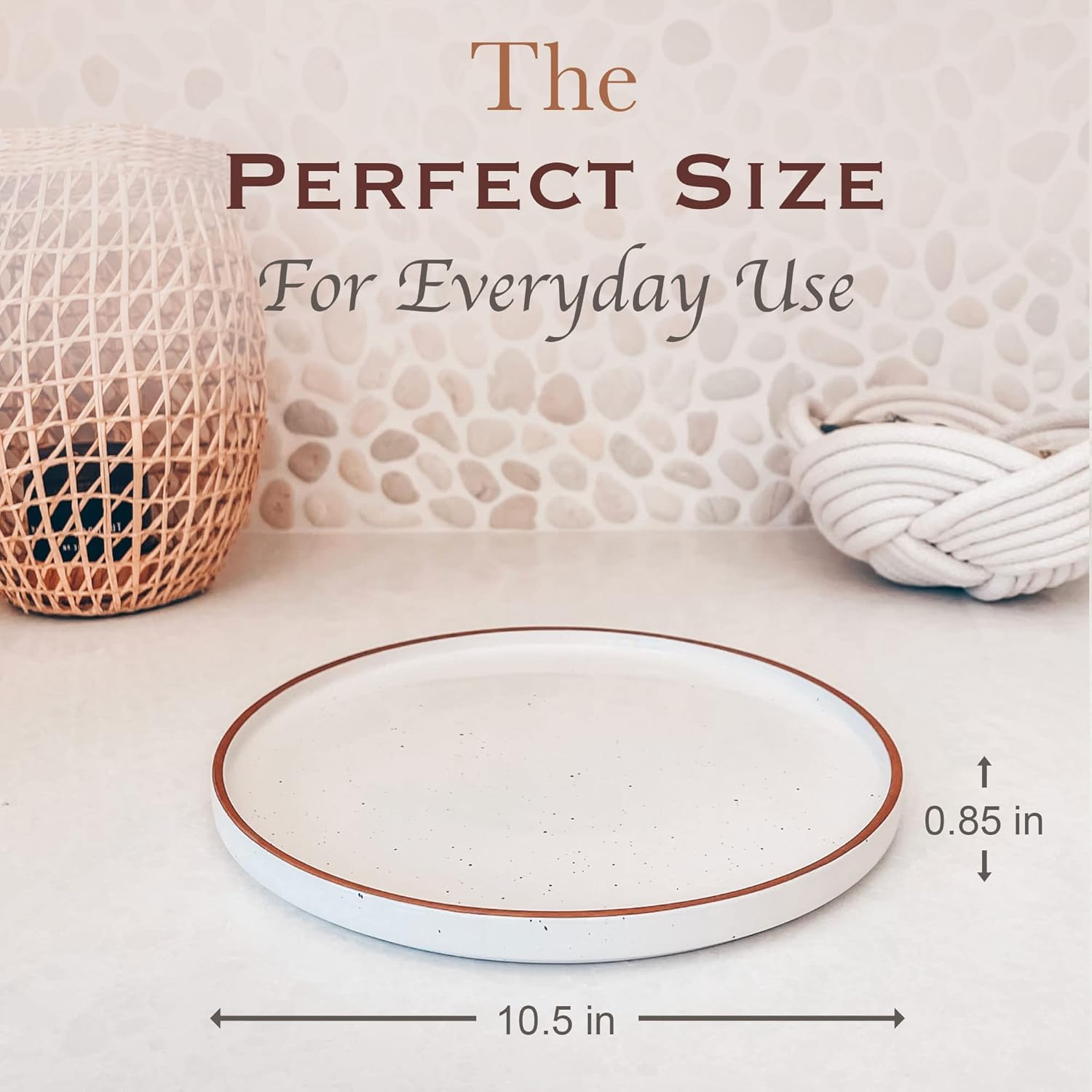 Mora 10.5-inch Porcelain Dinner Plate Set of 6 - Microwave/Oven/Dishwasher Safe, Scratch Resistant, Vanilla White