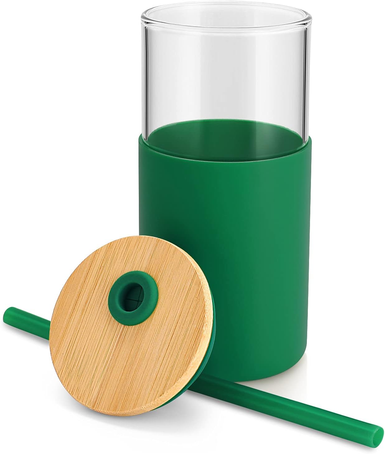 Tronco 16 oz Glass Tumbler with Straw and Bamboo Lid, Iced Coffee Cup Reusable, Smoothie Cups, Tumbler with Silicone Protective Sleeve - BPA Free