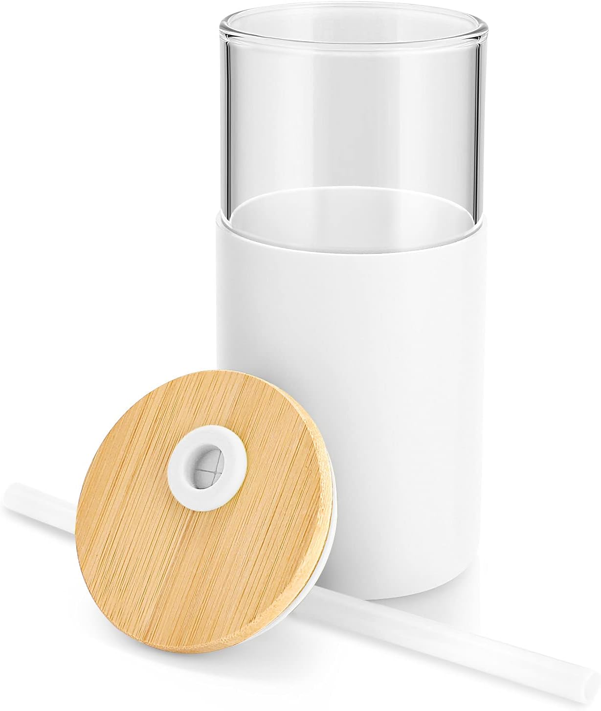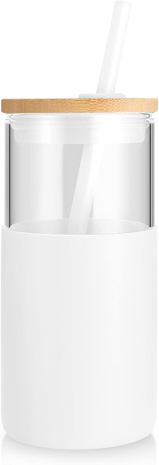 Tronco 16 oz Glass Tumbler with Straw and Bamboo Lid, Iced Coffee Cup Reusable, Smoothie Cups, Tumbler with Silicone Protective Sleeve - BPA Free